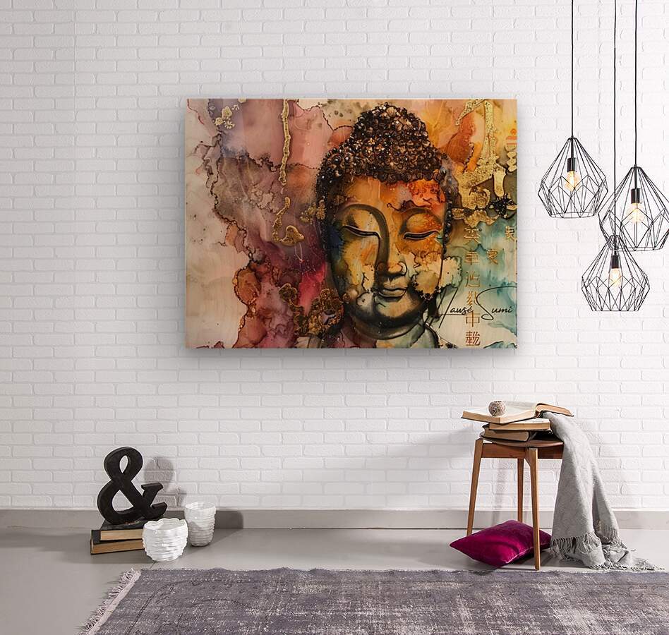 This piece uses gold and earth tones to highlight the serene and contemplative features of a peaceful face. The artwork suggests a reflection on life&...[+]