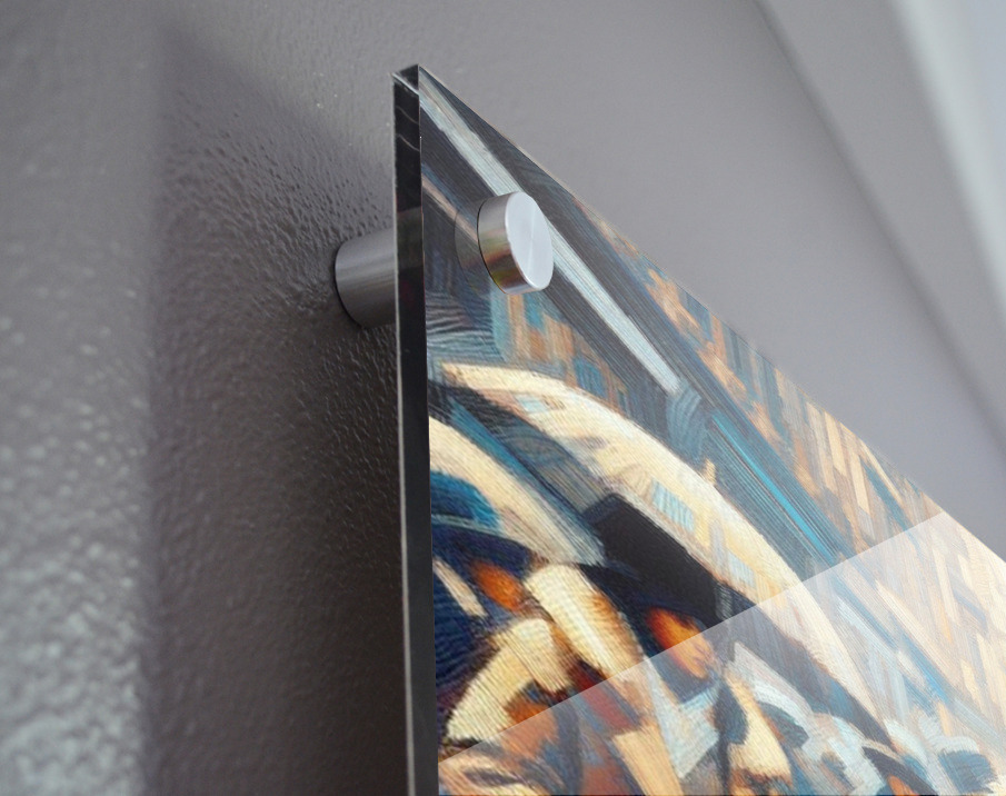 Fine Art made from a Premium polished, best-in-class, 99.9% optically pure acrylic and the latest Flatbed printing craftmanship.