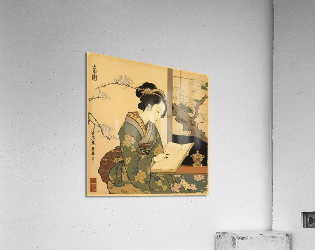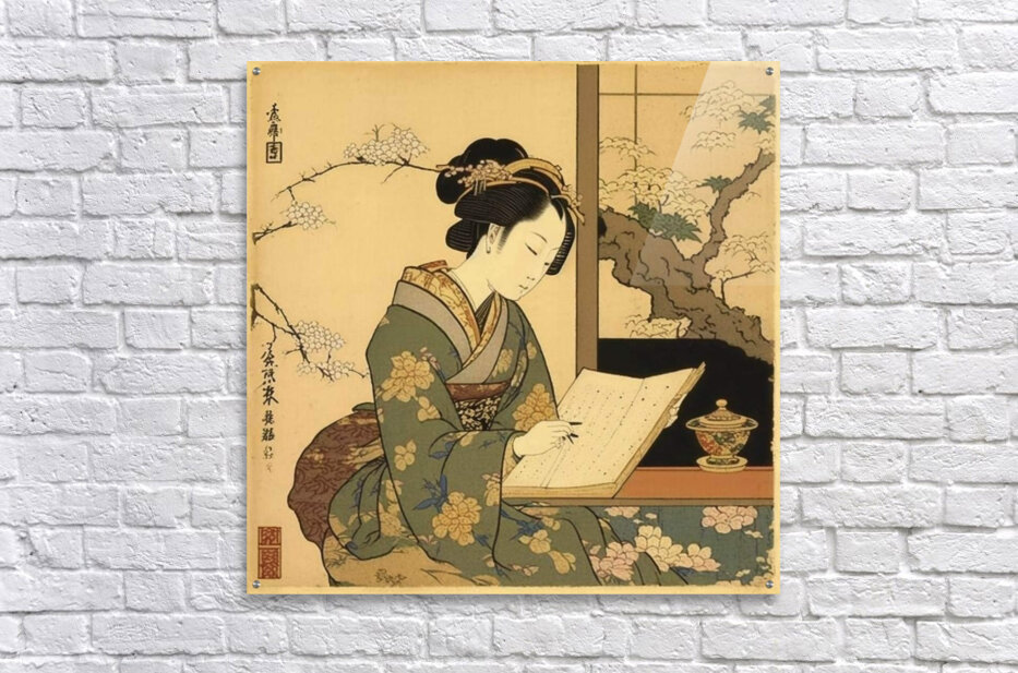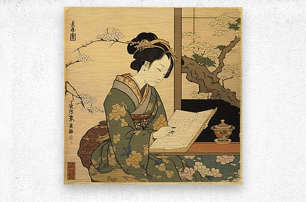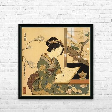 A delicate and detailed illustration of a young woman reading amidst blooming cherry blossoms. The soft colors and intricate patterns celebrate the ha...[+]