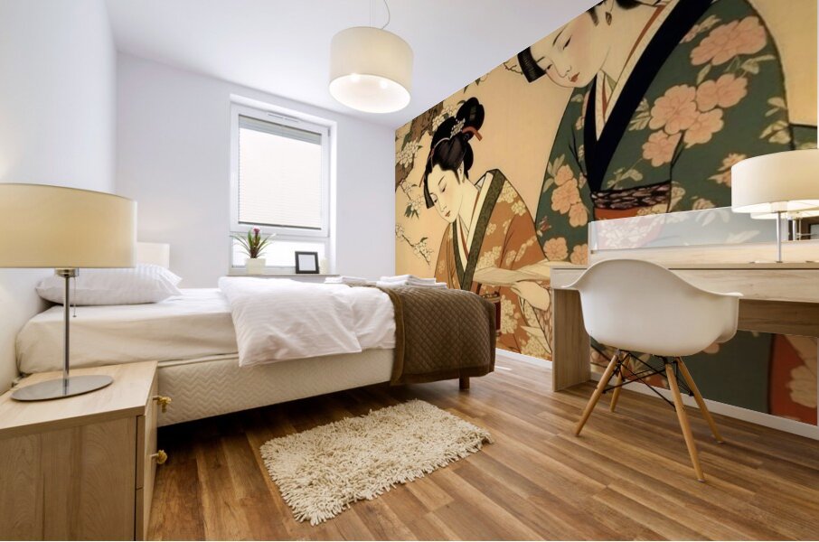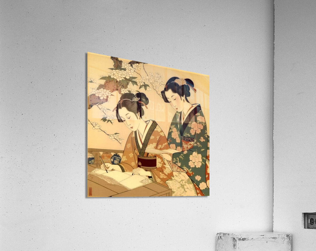 "Sakura Scholars" illustrates two women in beautiful kimonos, deeply engrossed in writing under a cherry blossom tree. The detailed patterns and harmo...[+]
