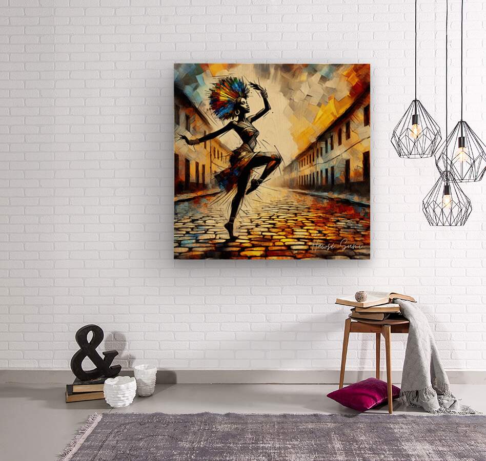 “Rhythms of the Soul" depicts a woman in a dynamic pose, embodying the energy and rhythm of African music and dance. Set against a backdrop of a lively urban street, the artwork conveys a sense of movement and harmony. It celebrates the powerful connection between music, dance, and the African spirit.