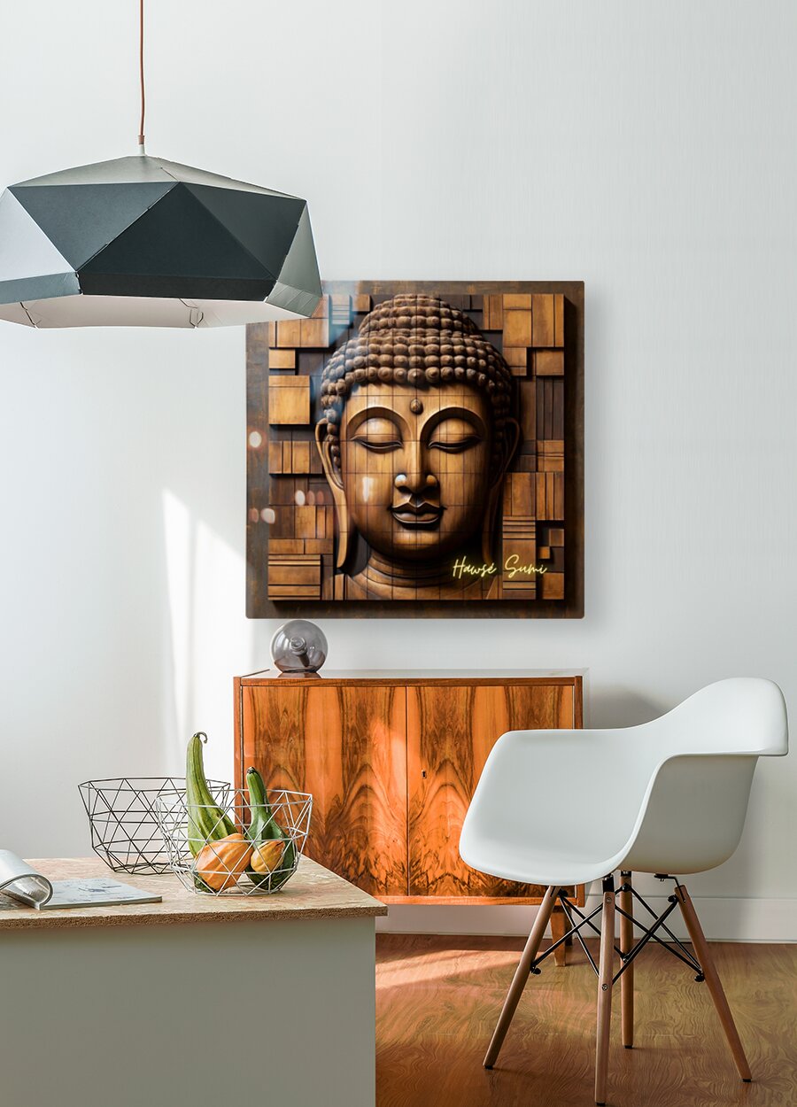 Serenity in Blocks" presents a captivating portrayal of Buddha, meticulously crafted using a mosaic of wooden blocks. This artwork symbolizes inner peace, enlightenment, and the harmonious blend of traditional artistry with modern techniques. The intricate design and warm tones create a sense of calm and balance, inviting viewers to find tranquility and mindfulness in the presence of this serene image. Perfect for any space seeking a touch of spiritual elegance and meditative ambiance.