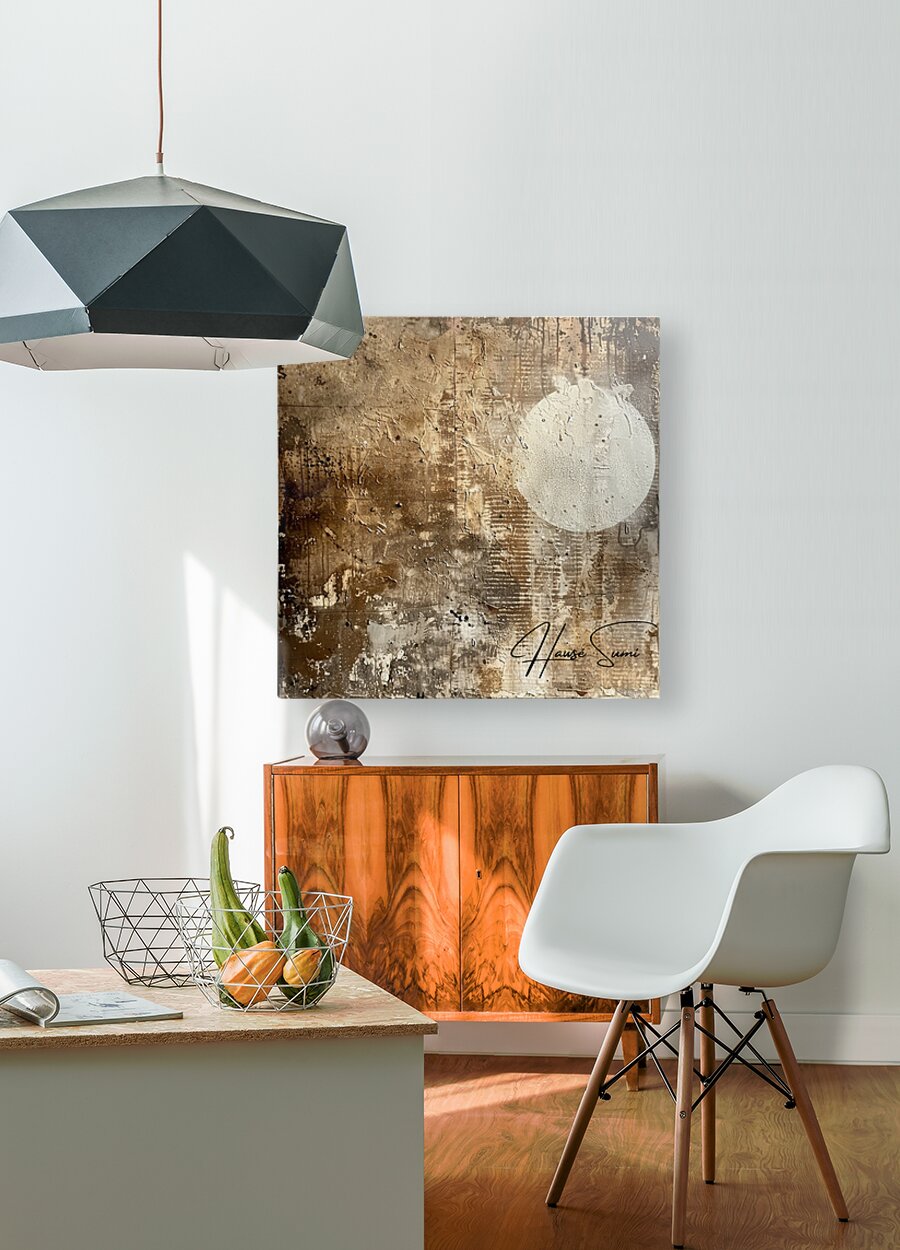 With its rugged texture and earthy tones, this painting represents the echoes of time. The abstract forms and layers suggest the passage of moments, each leaving an indelible mark on the canvas of life.