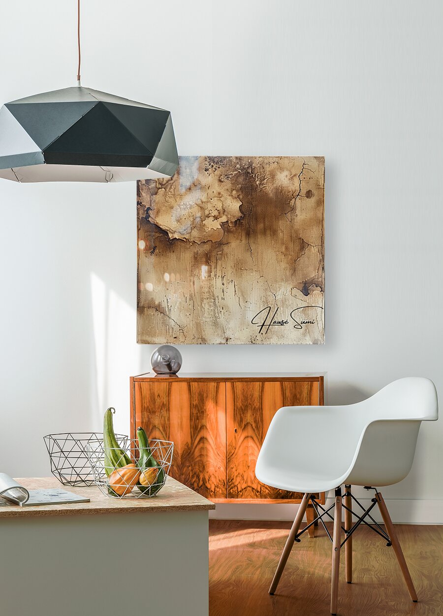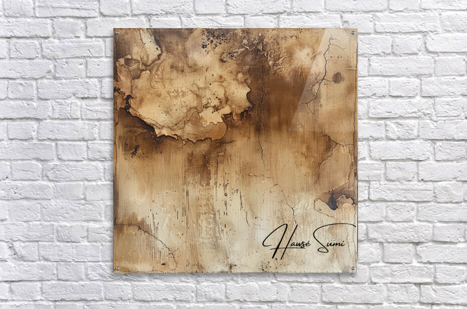 This painting captures the essence of peaceful moments amidst chaos. The warm, earthy tones and cracked textures symbolize the resilience and strength found in embracing life's imperfections. Each crack and blotch tells a story of survival and beauty in the face of adversity.