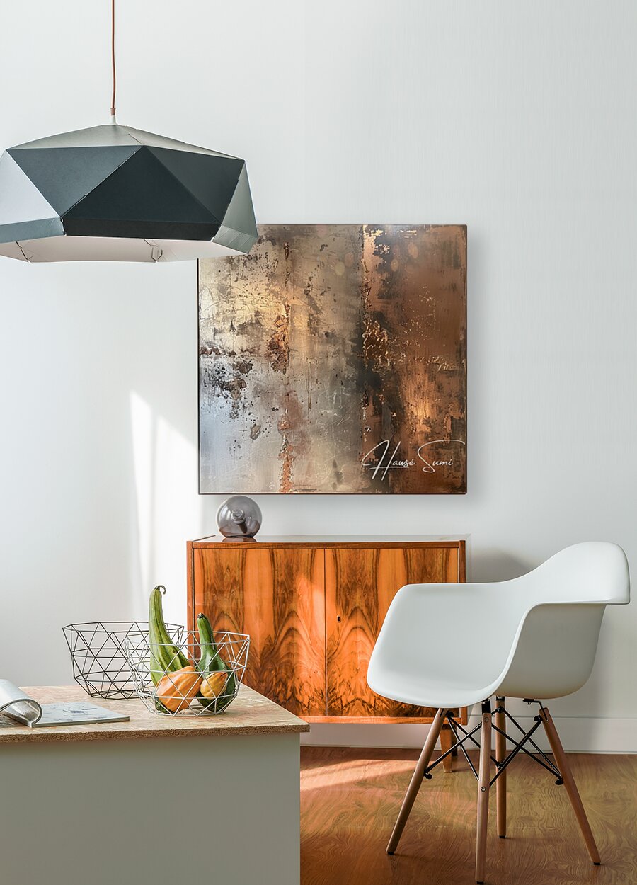 Featuring a striking contrast between dark shadows and golden highlights, this artwork embodies the duality of light and darkness. The textured surface and abstract forms create a dynamic interplay, reminding viewers of the beauty found in contrasts and imperfections.