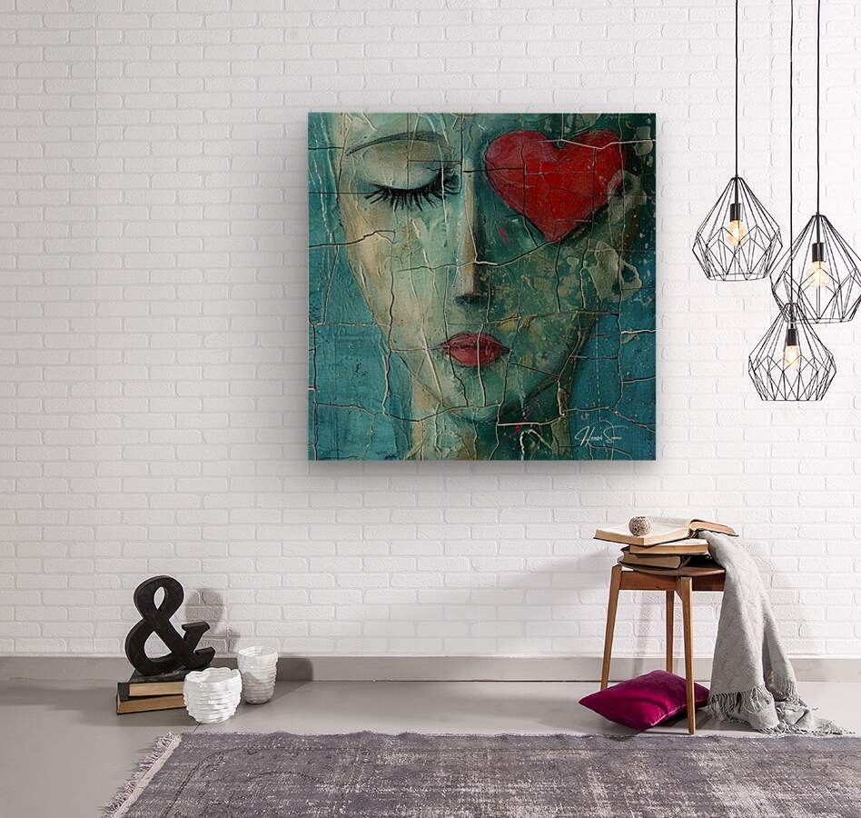 This captivating artwork, "Heart of Resilience," features a serene face with closed eyes and a vibrant red heart symbolizing self-love amidst life's trials. The cracked textures highlight the beauty found in vulnerability and strength. This exclusive piece will be issued to only one person. You can get "Heart of Resilience" in any size and material, including glass, wallpaper, or tapestry. For glass, tapestry, and wallpaper options, please send an email. All other formats can be purchased on the site. Each artwork comes with a certificate of authenticity.