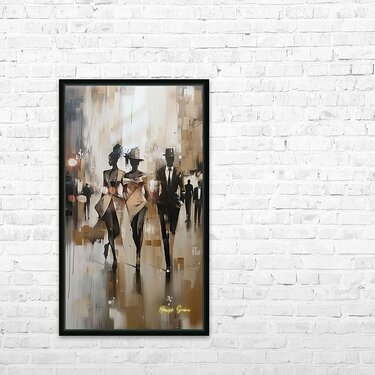 Amidst the blurred outlines of a busy city street, three figures stride forward with purpose. Their coordinated attire and confident postures suggest ...[+]