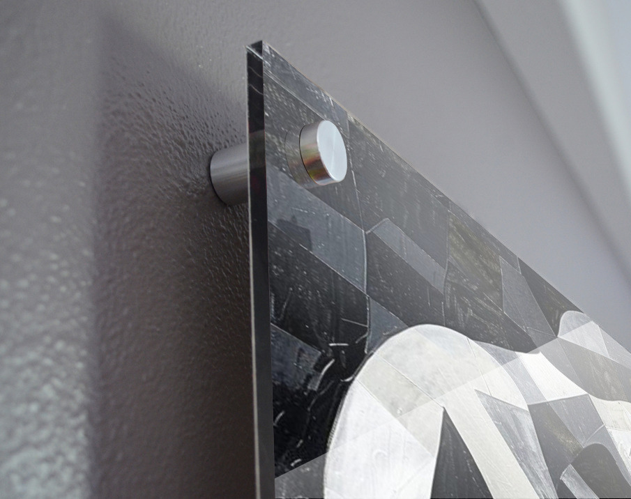 Printed to the edge - Ready to hang - provided with 4 premium polished aluminum stand off ( wall screws and mounting hardware provided )