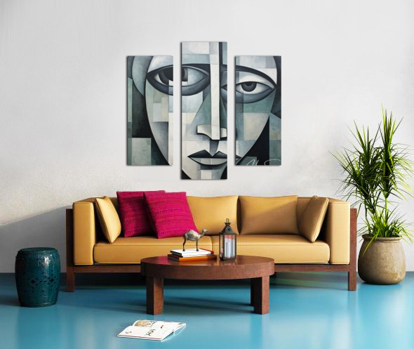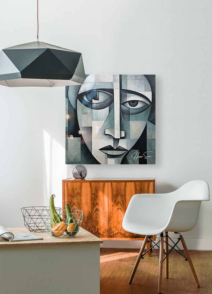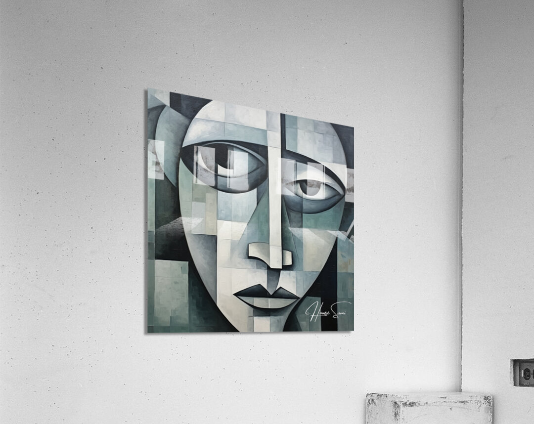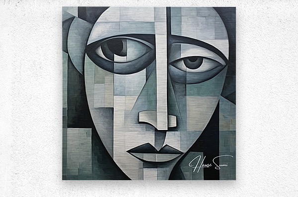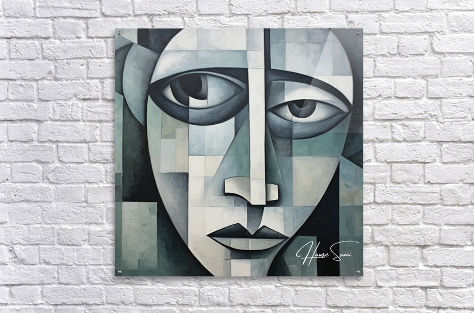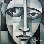This painting delves into the depths of introspection through a geometric abstraction of the human face. The muted tones and sharp lines represent the complexity of human emotions and the intricate layers of identity. The subject's gaze is distant yet profound, inviting viewers to ponder the deeper meanings of existence and self-awareness.