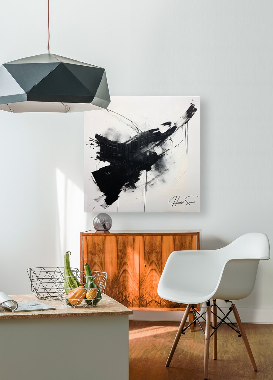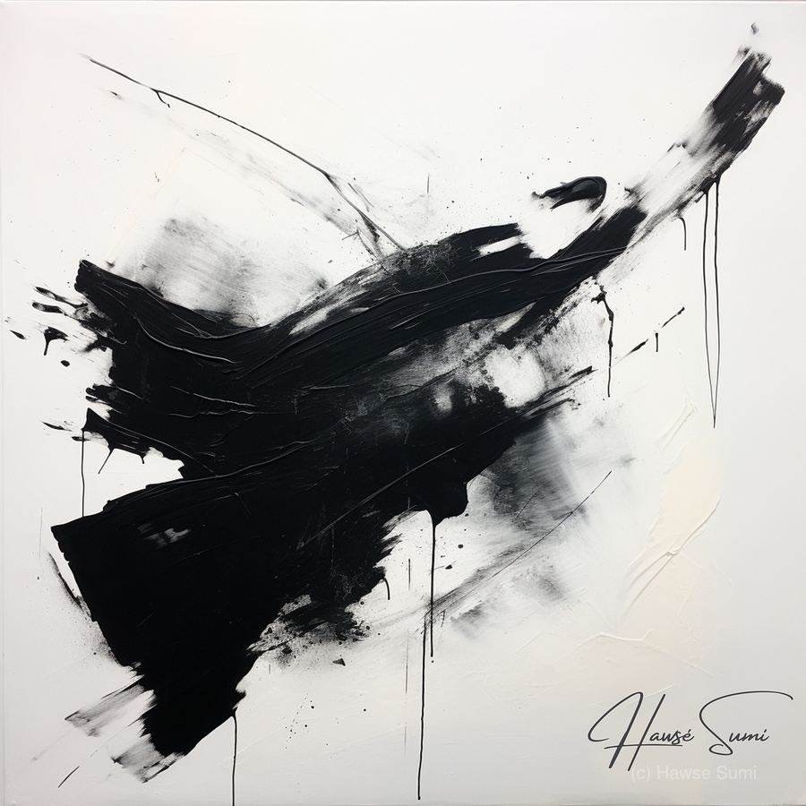 "Turbulence and Tranquility" delves into the balance between chaos and calm. The swirling black forms against the white background evoke a sense of movement and unrest, while also hinting at moments of stillness and peace. This artwork reflects the perpetual dance between turbulent emotions and tranquil states of mind, urging viewers to find equilibrium within their own inner landscapes.