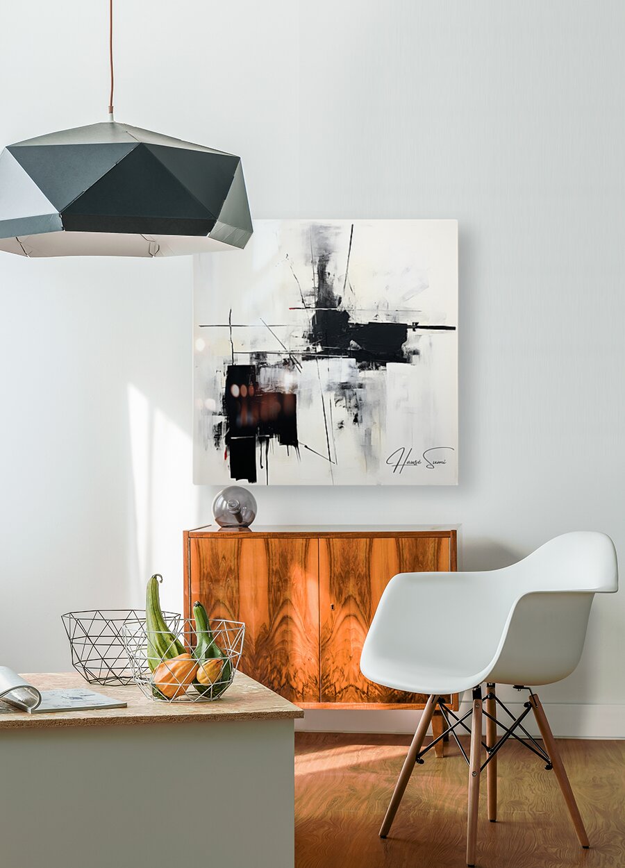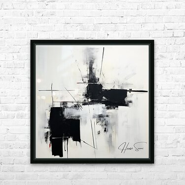 "Silent Resonance" explores the subtle yet profound impact of silent moments. The abstract composition, marked by stark black and white contrasts, conveys the deep resonance that silence can have on our emotions and thoughts. This piece encourages viewers to appreciate the power of quiet reflection and the strength found in stillness.