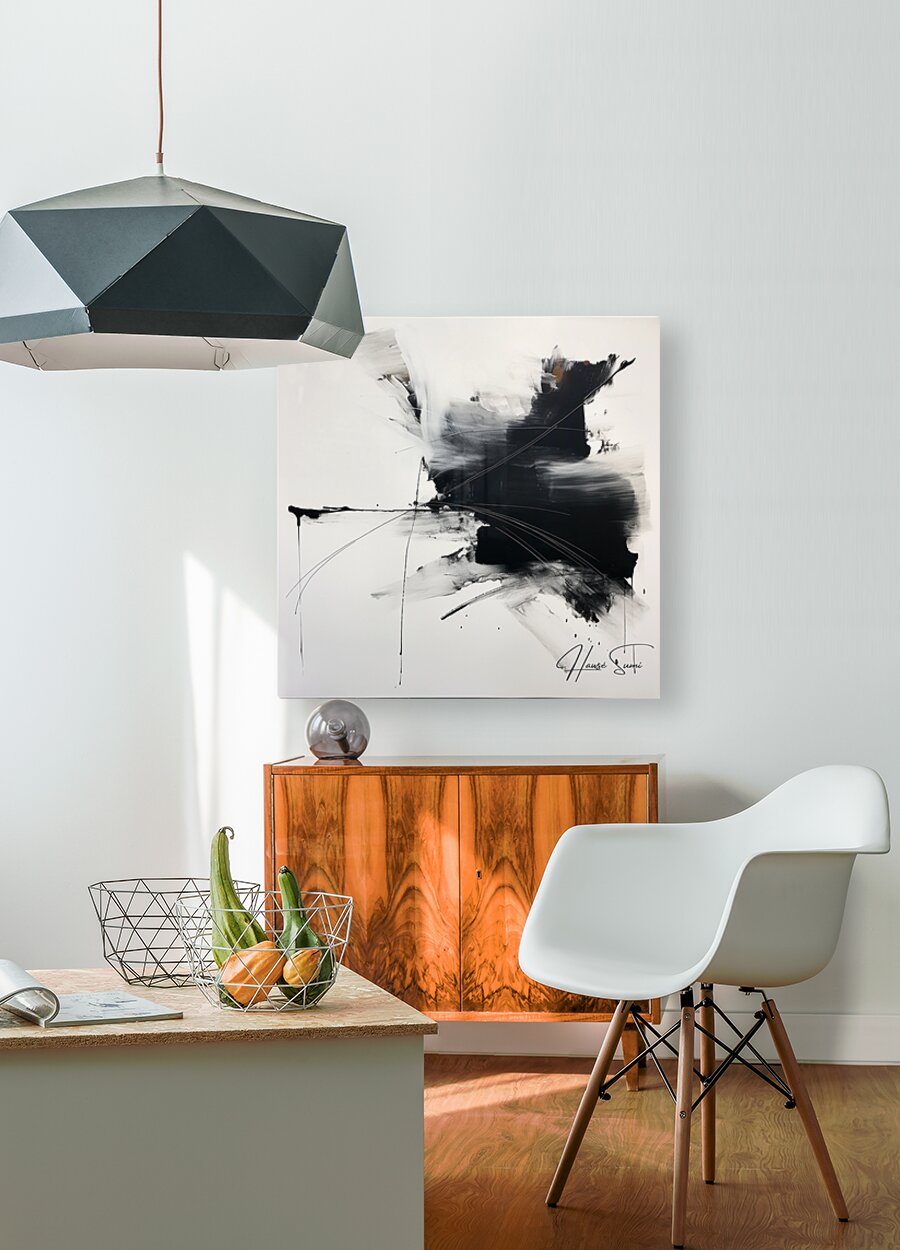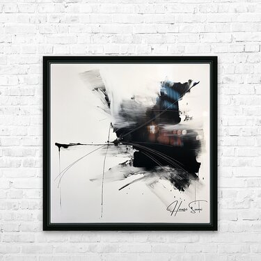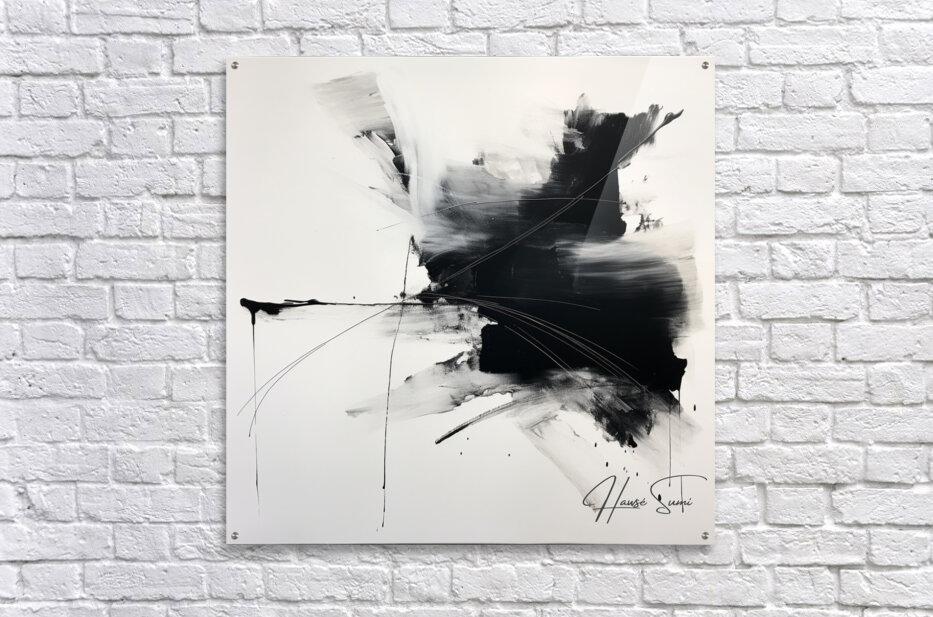 "Echoes in Monochrome" captures the stark contrast between light and darkness, illustrating the duality of existence. The interplay of bold black strokes and delicate white spaces creates a dynamic and dramatic composition, symbolizing the echoes of past experiences and future possibilities. This piece invites viewers to explore the tension and harmony between opposing forces in their own lives.