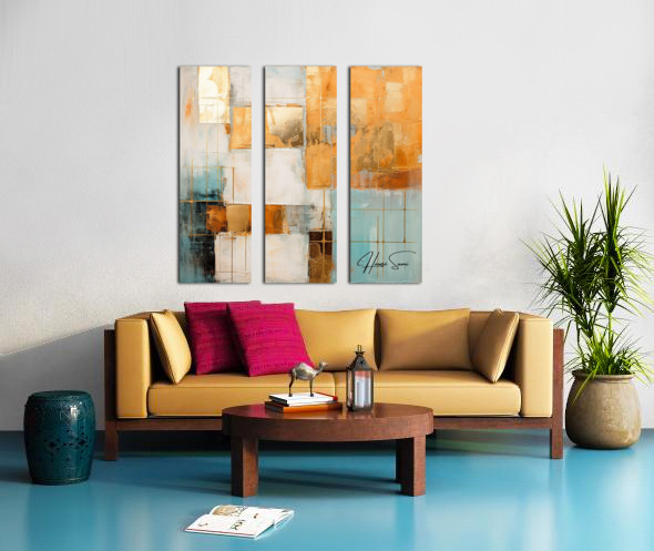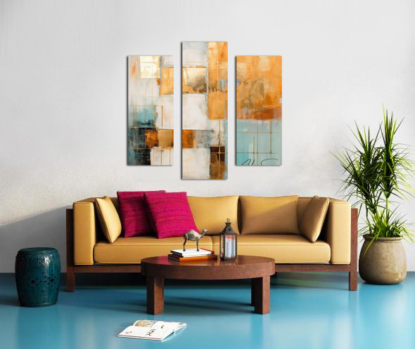 36 x 36 cross triptych split canvas