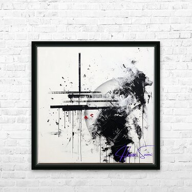 This piece explores the concept of resonance, using radial lines and concentric circles to create a sense of movement and energy. The central black core symbolizes the origin of resonant waves, expanding outward to connect with the viewer.