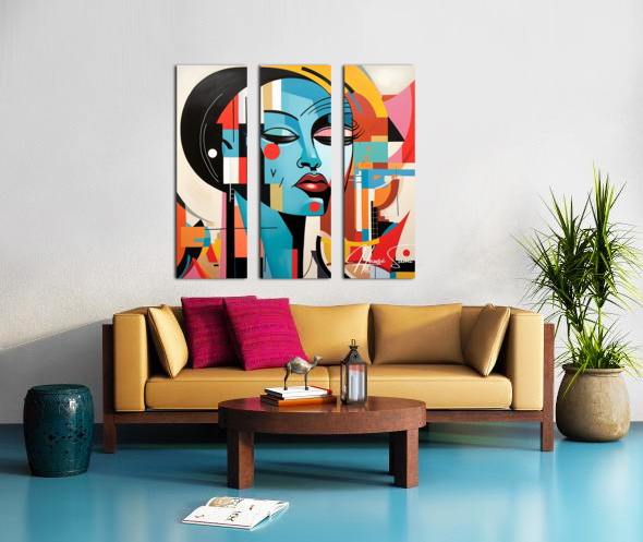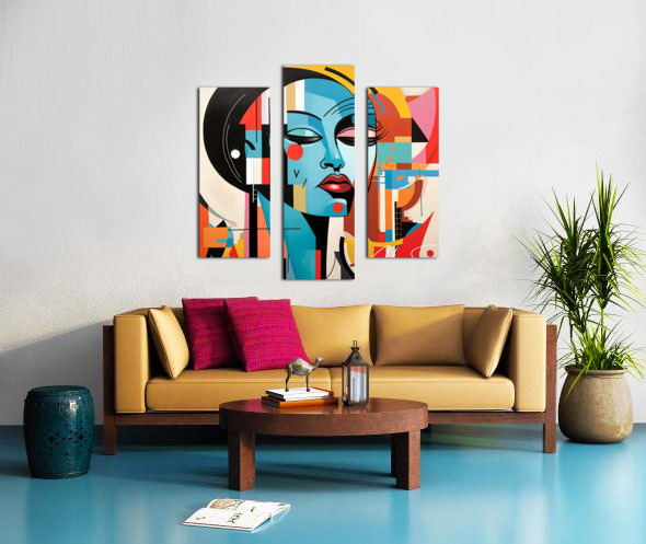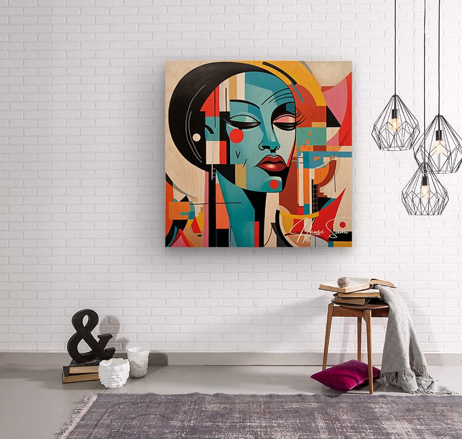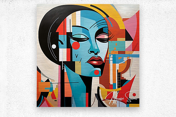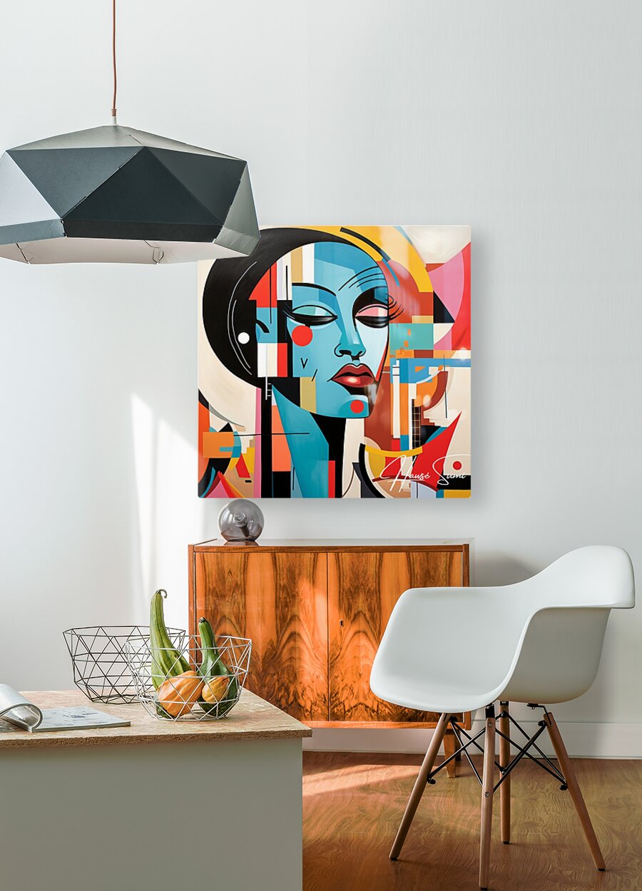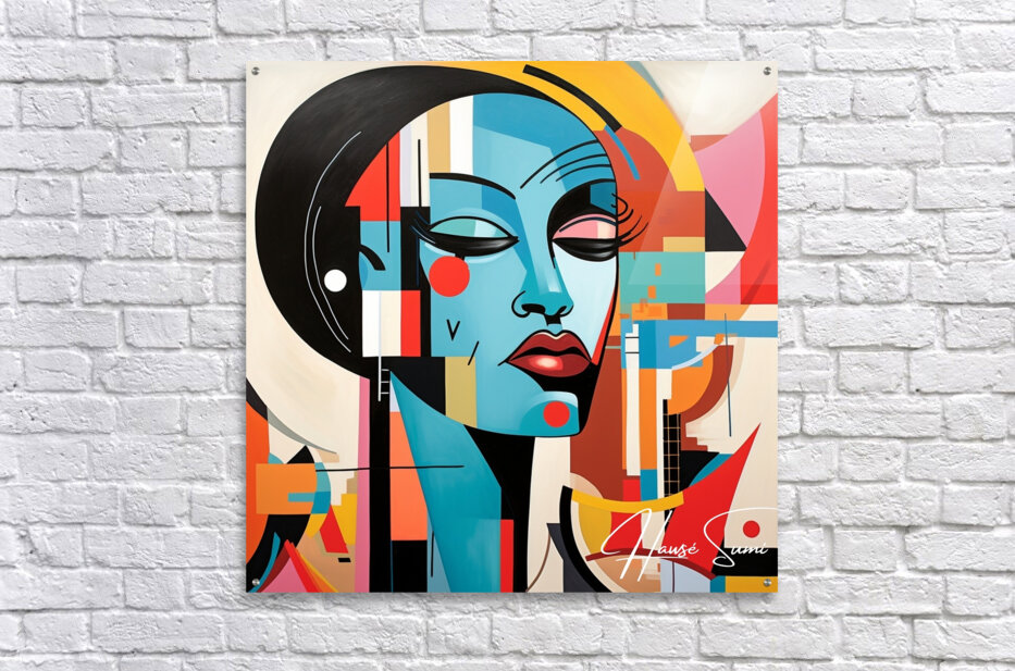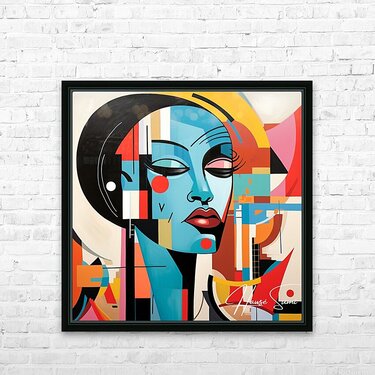 This painting captures the essence of a contemporary muse, blending vibrant geometric shapes with serene facial features. It symbolizes the harmony between modernity and tradition, reflecting the muse's ability to inspire in a rapidly changing world.