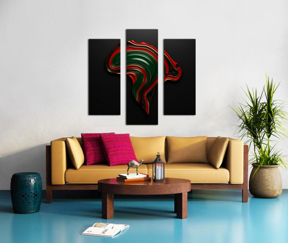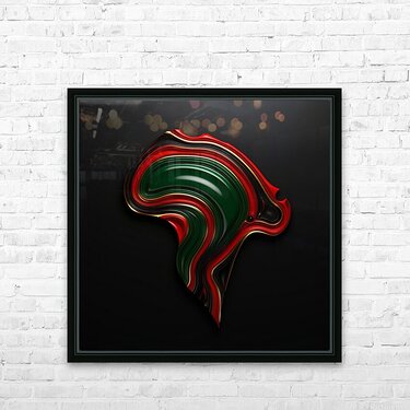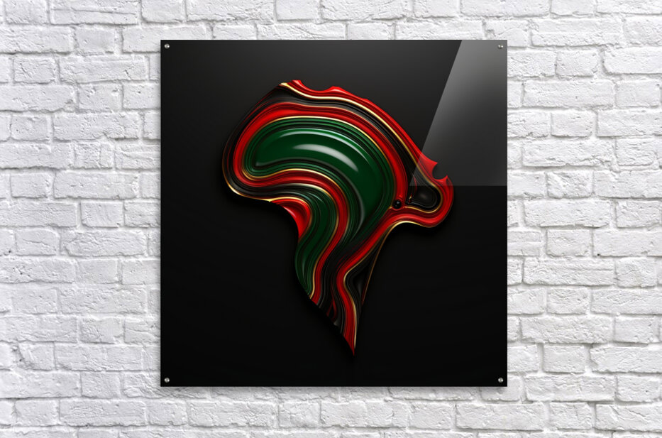 "Mother Africa - IV" features a sleek and sophisticated interpretation of the African continent. The smooth, flowing lines in bold colors create a sense of harmony and balance, symbolizing the unity and strength found within Africa's diversity. This piece celebrates the continent's enduring legacy.