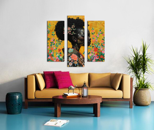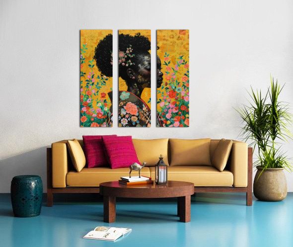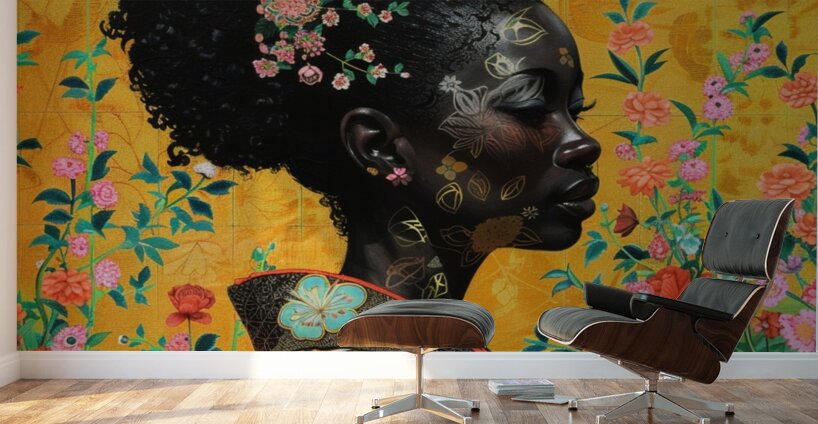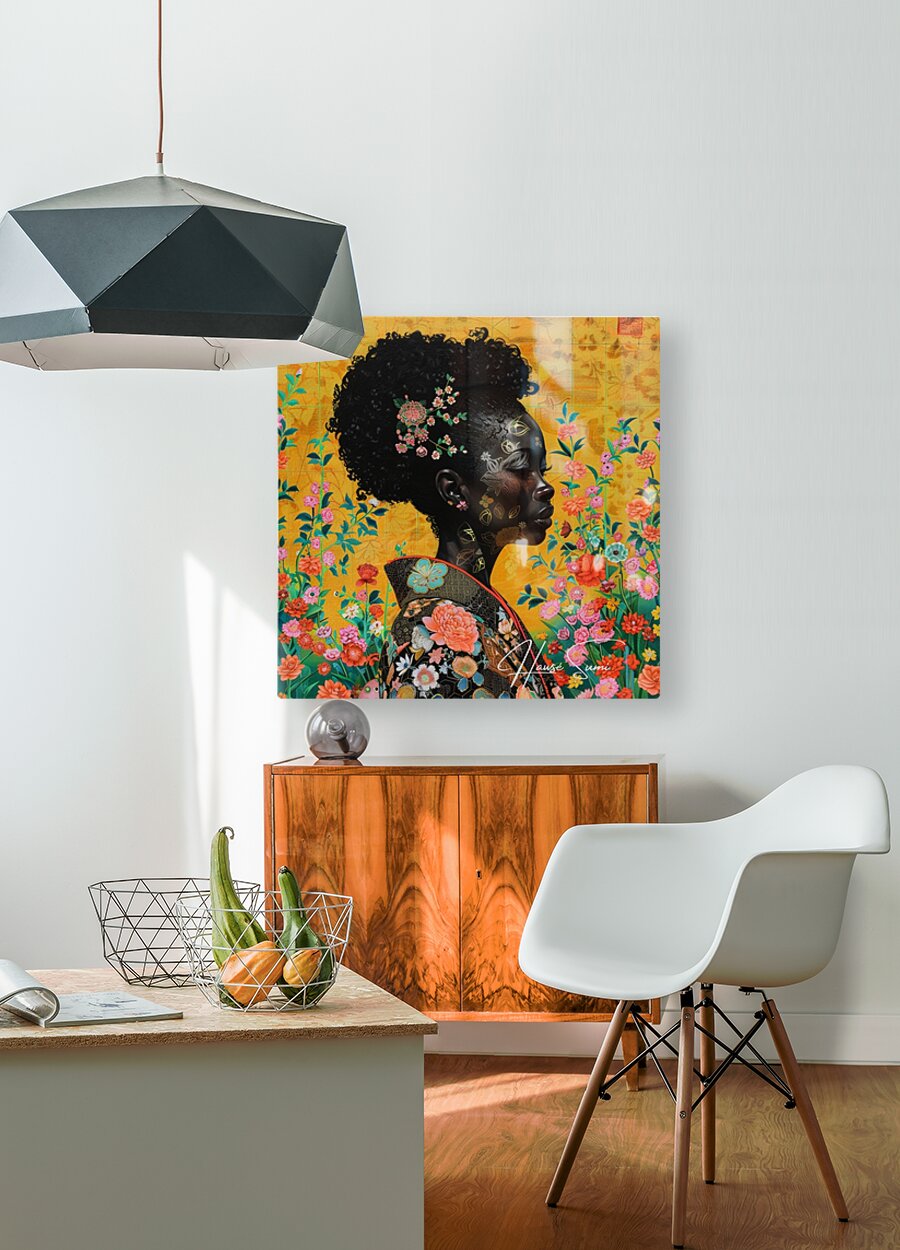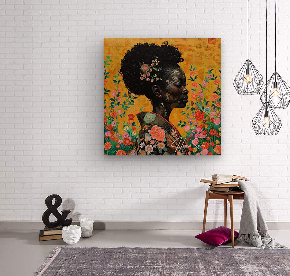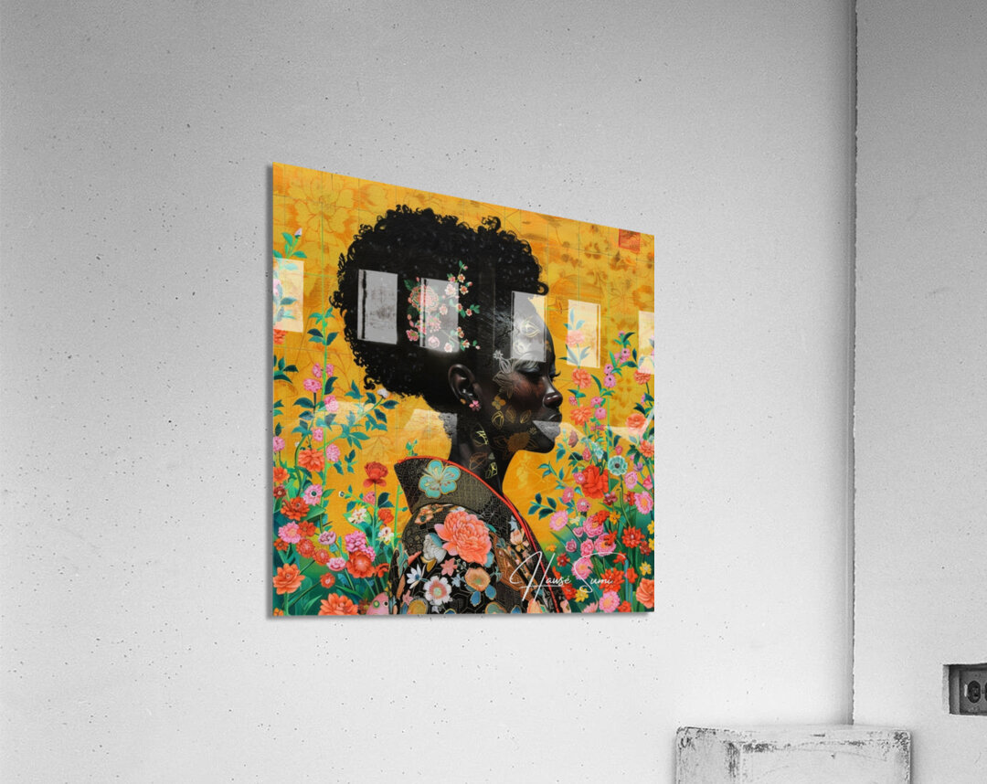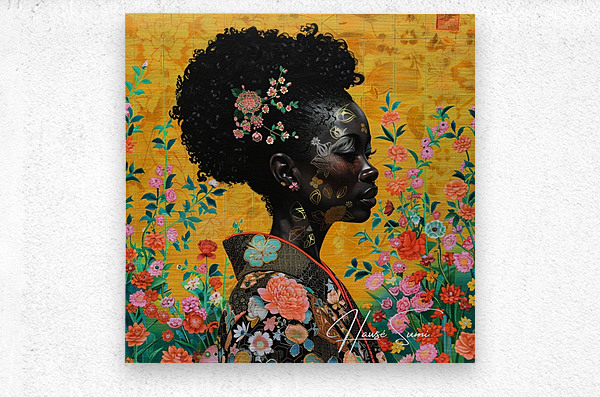 "Floral Serenity" features a woman in traditional attire, surrounded by a vibrant floral background. The intricate patterns on her clothing and the bl...[+]