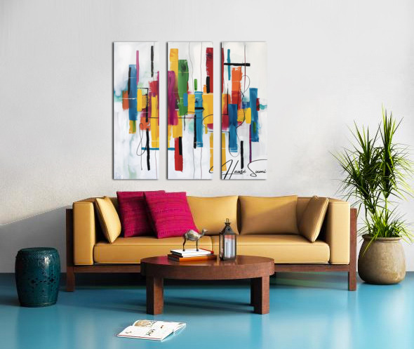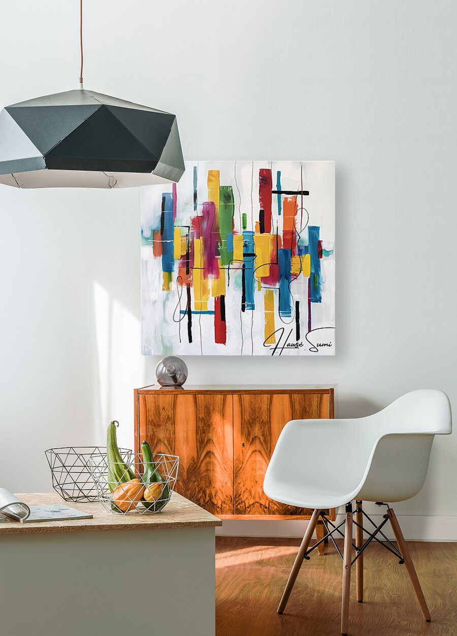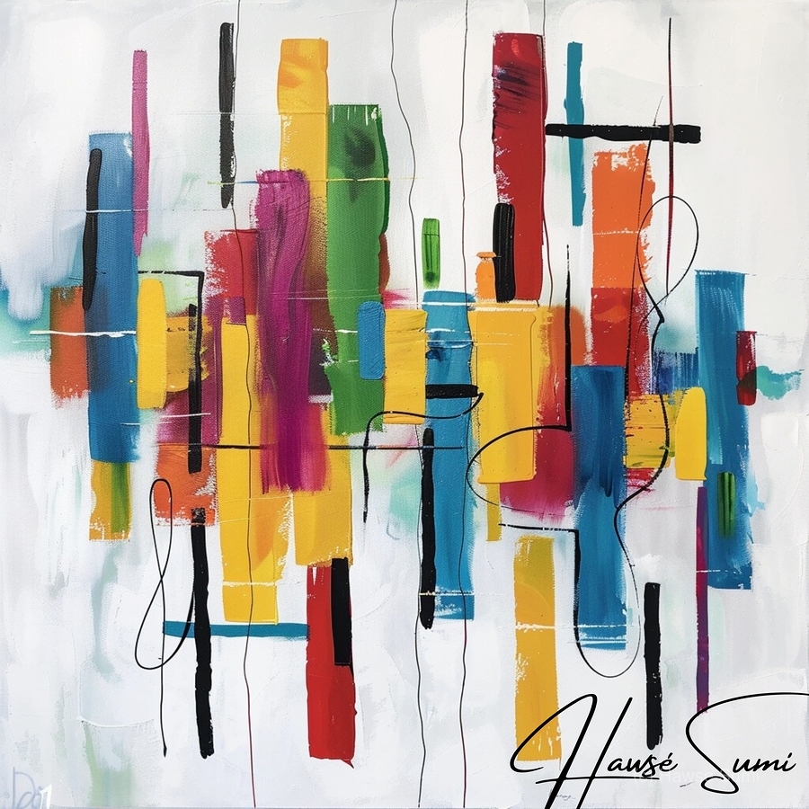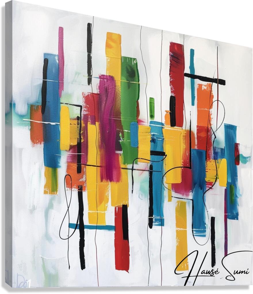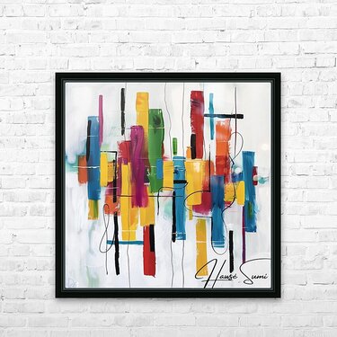 A dynamic blend of geometric shapes and vibrant colors creates a symphony of urban life. This artwork represents the hustle and bustle of cityscapes,...[+]