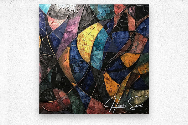 This artwork uses fractured shapes and bold colors to depict a fragmented reality. Each piece fits together to form a complex whole, symbolizing the m...[+]