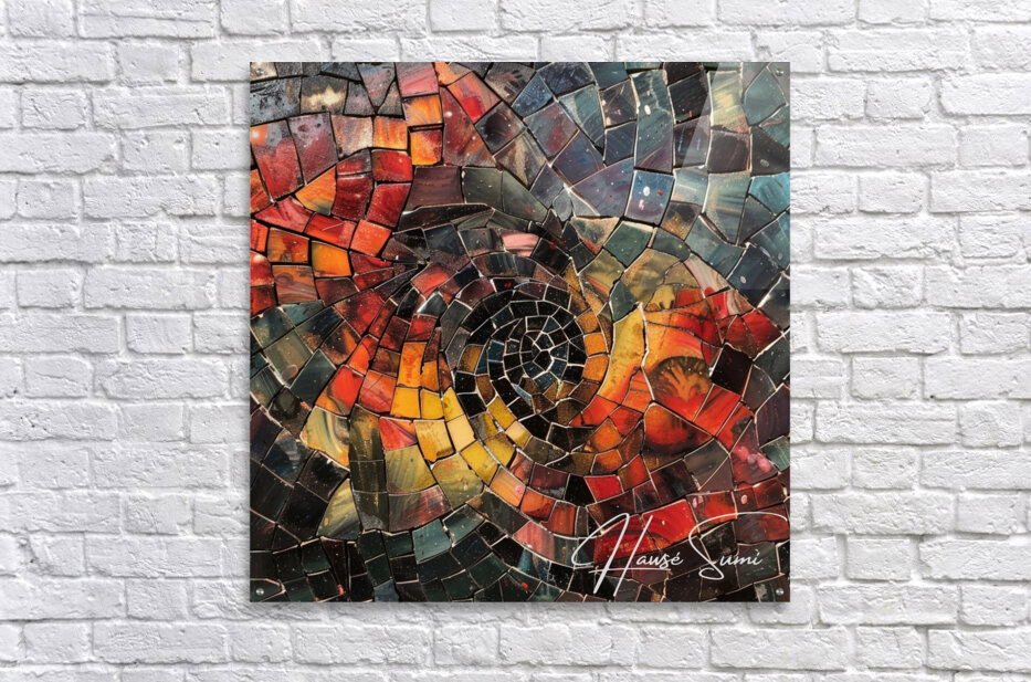 A mesmerizing spiral of mosaic tiles draws the viewer into a captivating journey. The intricate patterns and vibrant hues symbolize the endless possibilities and paths one can take in life.