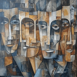 In muted tones and layered textures, "Echoes of Time" portrays the passage of time through the solemn expressions of four individuals. The interwoven lines and shades create a tapestry of memories, hinting at the shared experiences and silent reflections that bind us across generations.