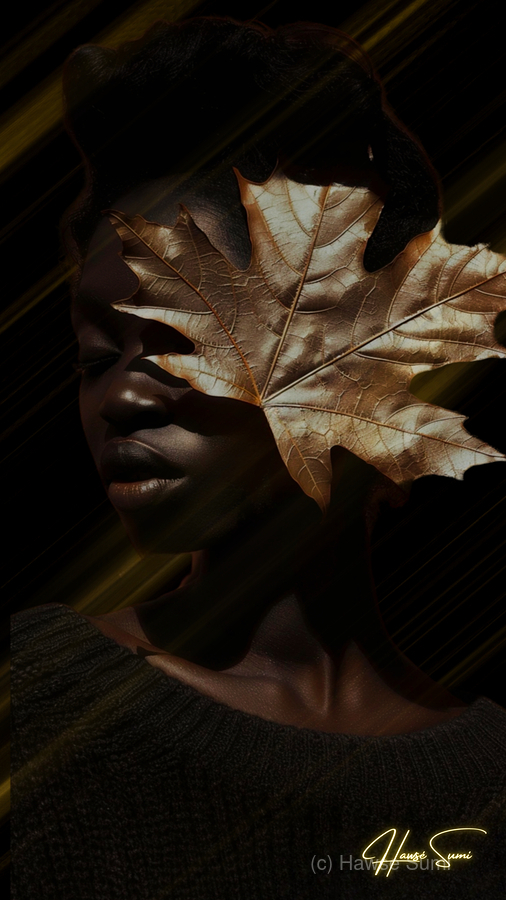 "Autumn Reverie" In a tranquil forest, three women find solace and strength through their connection with nature. Each holds a leaf that symbolizes a unique chapter in their lives, reflecting their journeys of transformation, resilience, and inner power. Amara stands at the edge of the woods, feeling the rough texture of a maple leaf and finding peace in her past struggles. Nia, wrapped in a cozy scarf, gazes into the distance with a metallic leaf symbolizing her developed resilience and strength. Zara, bathed in the golden glow of the setting sun, holds a leaf that represents hope and guidance through darkness. Together, they embody the essence of "Autumn Reverie," celebrating nature's cycles and personal growth.