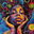 A vibrant and whimsical portrait featuring a woman surrounded by kaleidoscopic patterns and colors. The artwork combines elements of fantasy and real...[+]