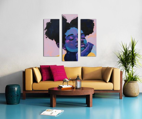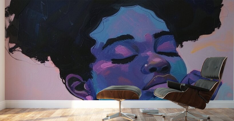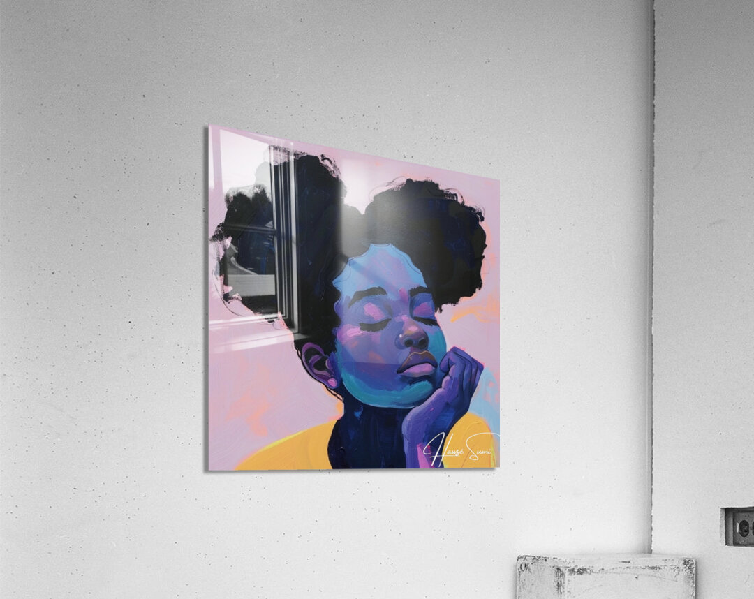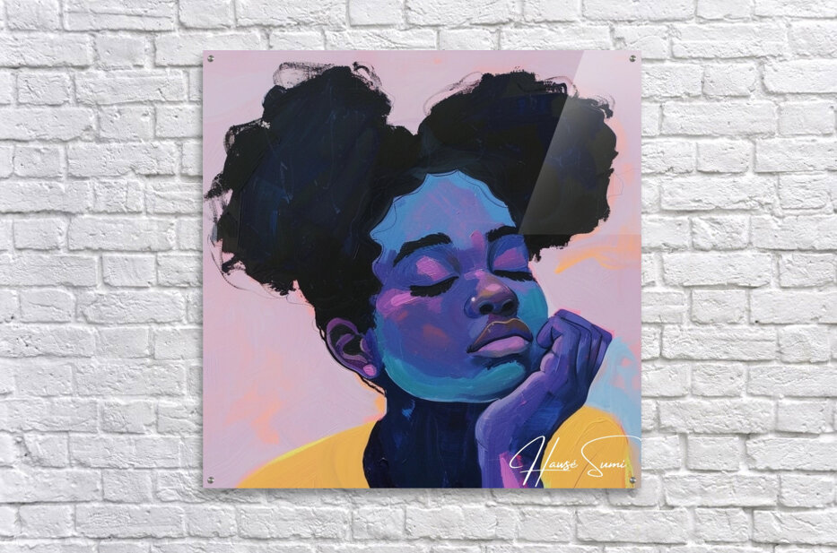 This painting, titled "Dreamy Serenity," evokes a sense of calm and tranquility. The pastel tones of pink, blue, and lavender envelop the subject, who appears to be lost in a serene daydream. The abstract nature of the piece enhances its ethereal quality.