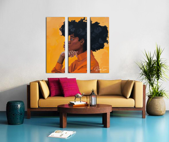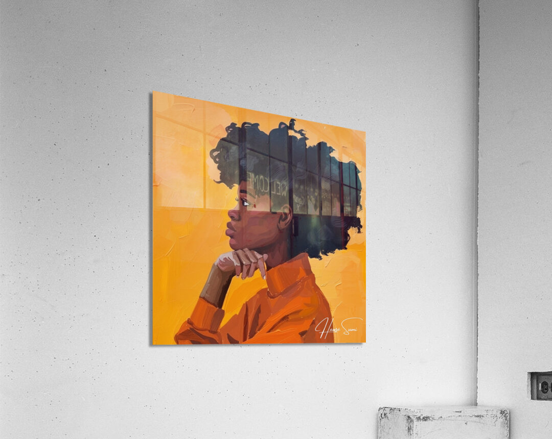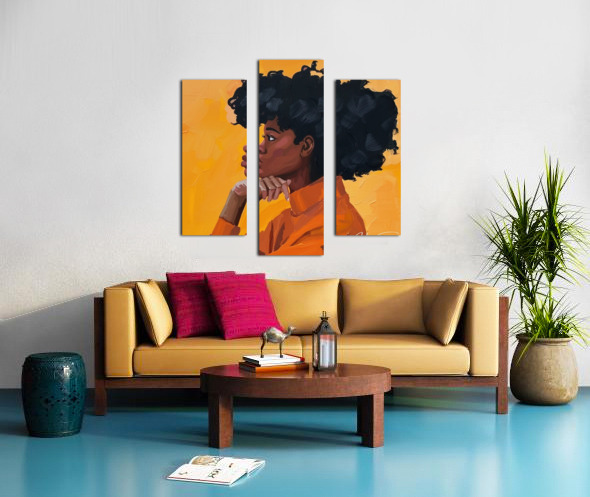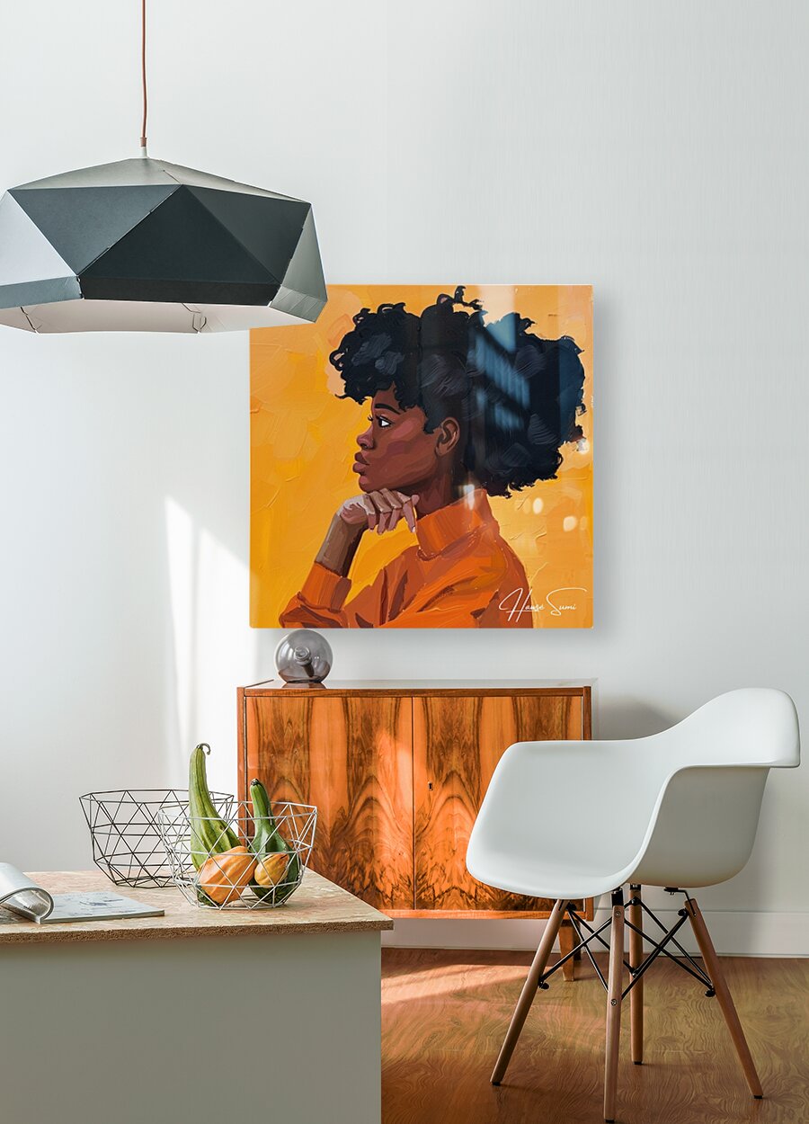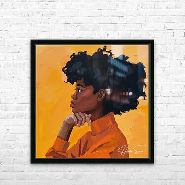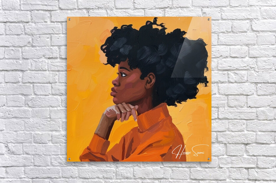 Bold Contemplation" features a striking profile of the subject set against a vibrant orange background. The bold use of colors such as orange, red, an...[+]