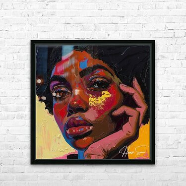 This painting captures a moment of deep introspection, where the subject's vibrant and expressive face is highlighted by bold strokes of red, yell...[+]