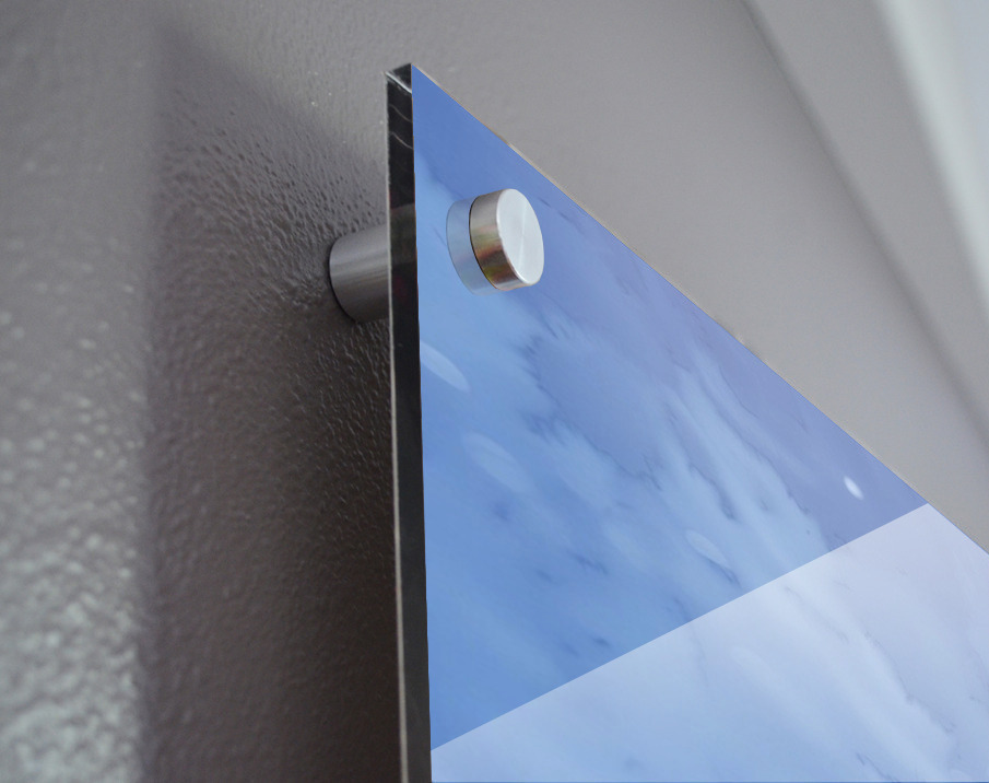Printed to the edge - Ready to hang - provided with 4 premium polished aluminum stand off ( wall screws and mounting hardware provided )