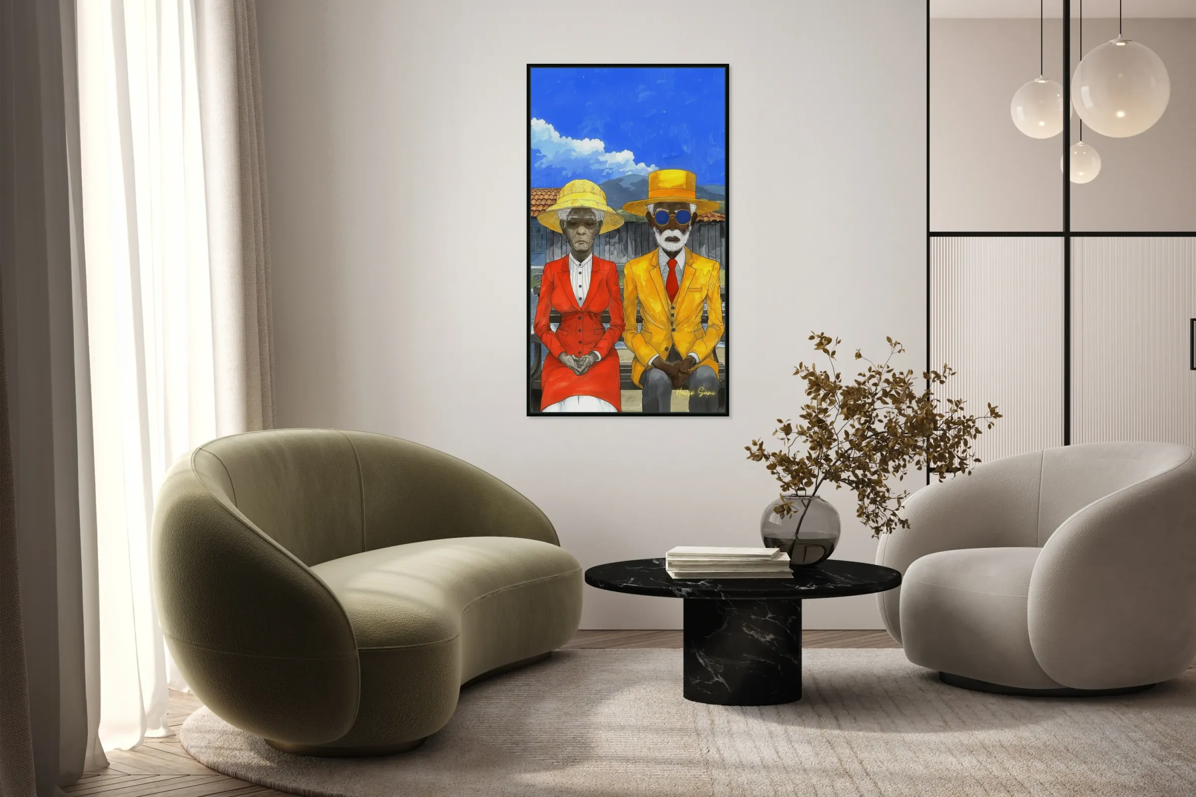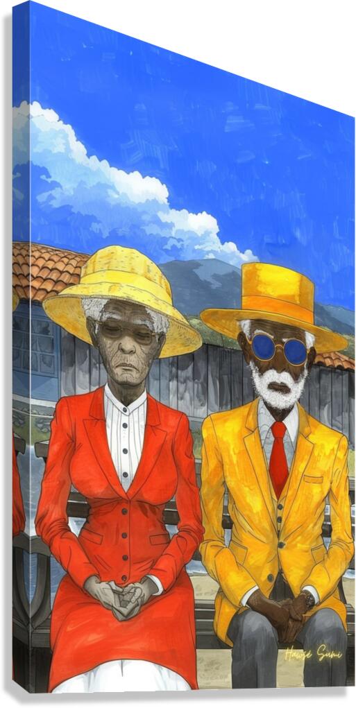 In "Vivid Memories," an elderly couple sits side by side, their bright and contrasting attire reflecting their vibrant personalities and enduring love...[+]
