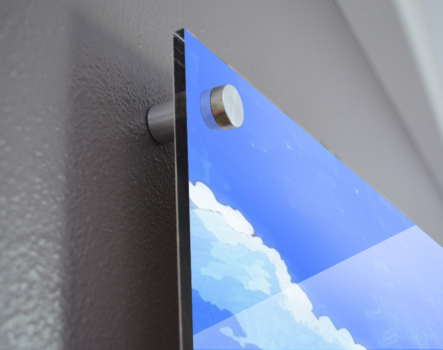 Printed to the edge - Ready to hang - provided with 4 premium polished aluminum stand off ( wall screws and mounting hardware provided )