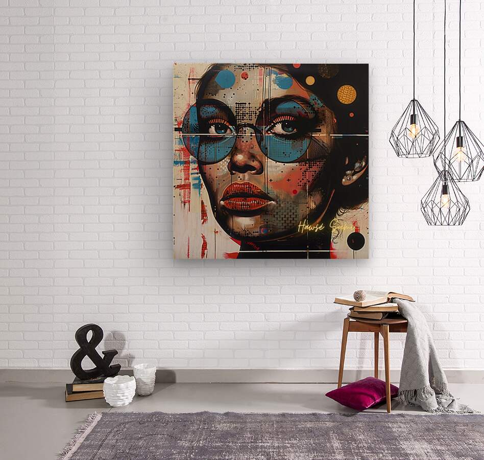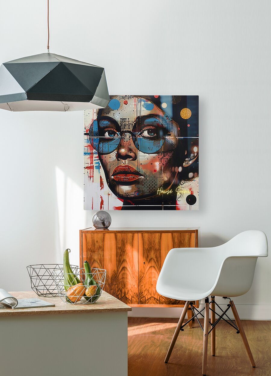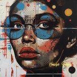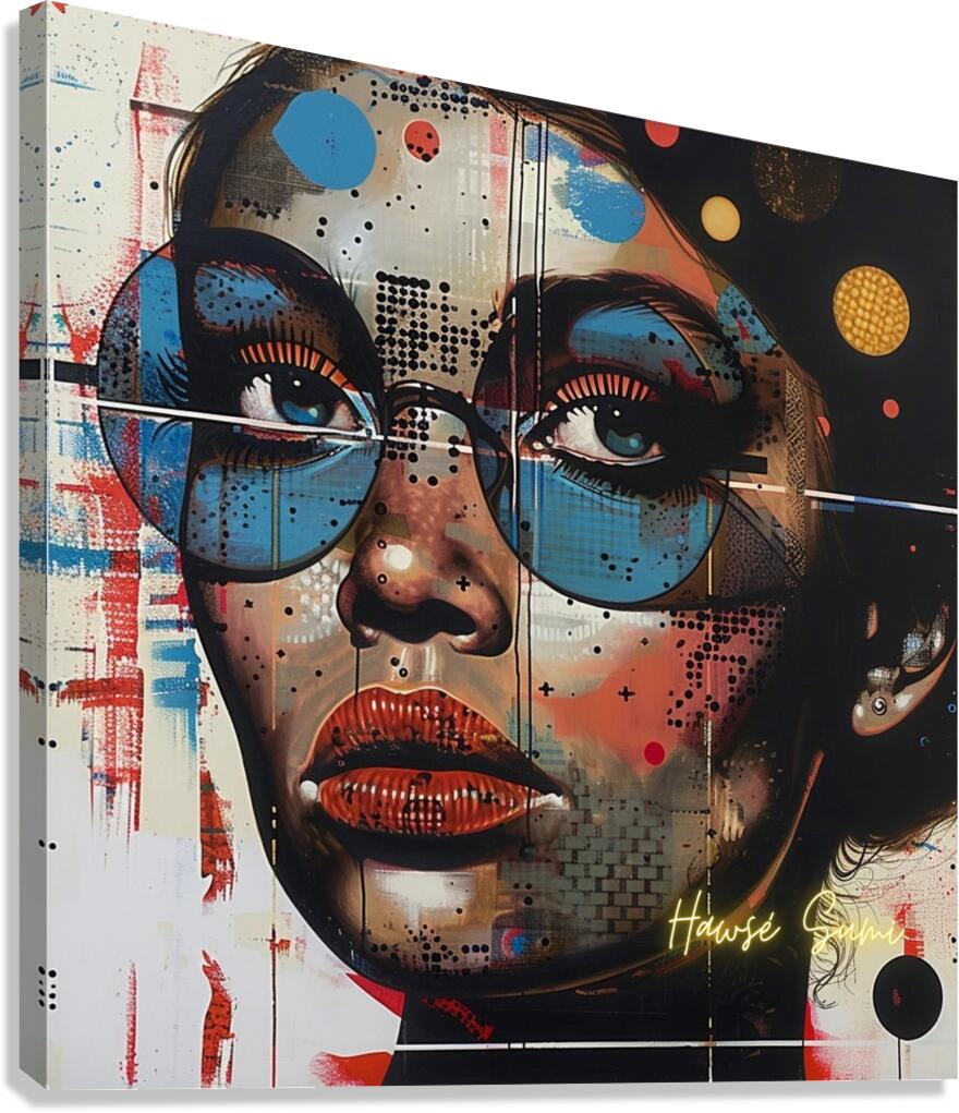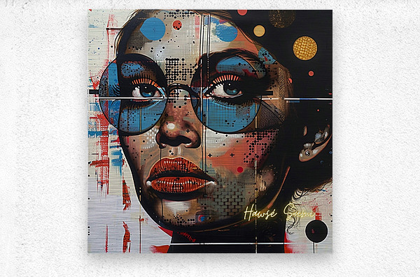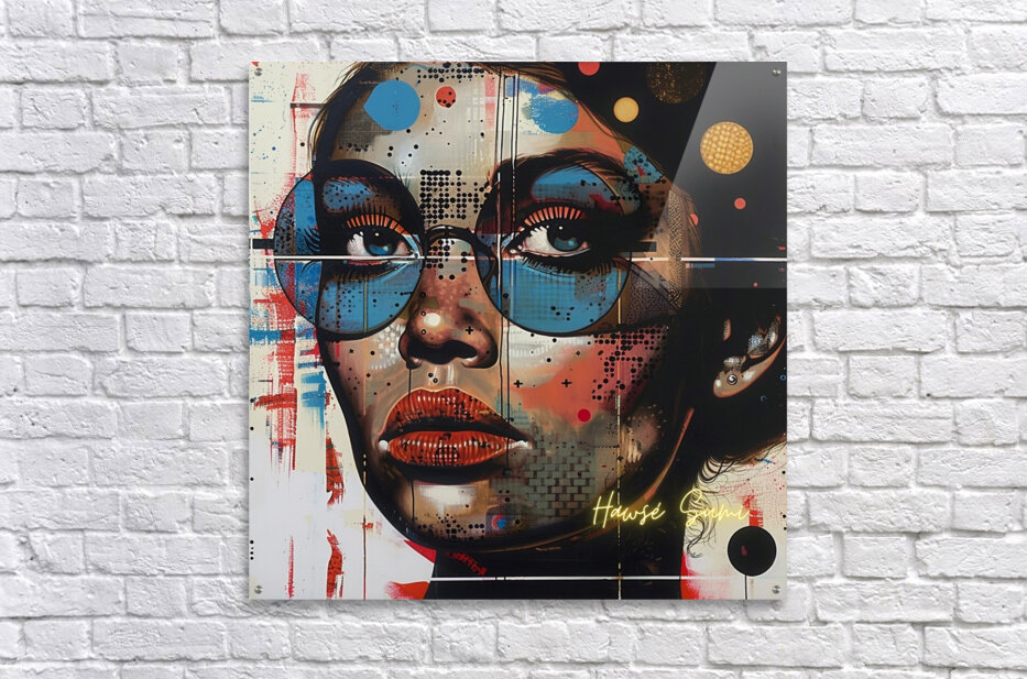 With a contemporary edge, this painting showcases a modern muse adorned with striking blue sunglasses. Her confident gaze and bold makeup represent th...[+]
