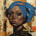 The woman in this painting exudes grace and poise, with her blue turban representing wisdom and tranquility. Her serene expression and delicate featur...[+]