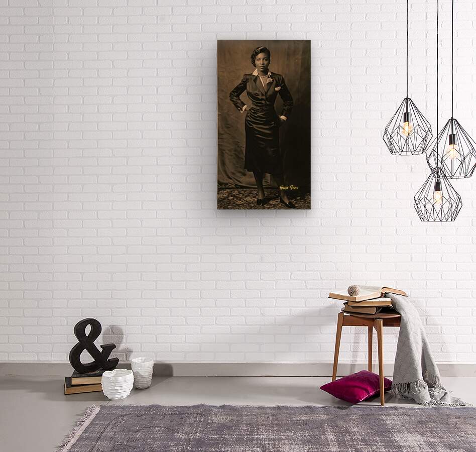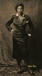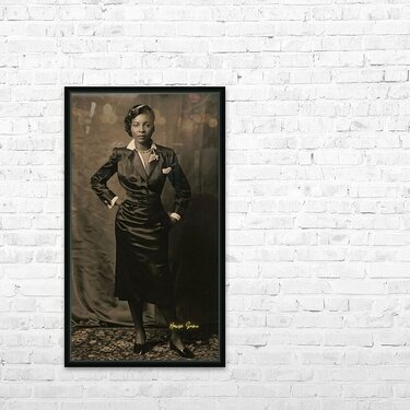 In the heart of the 1940s, a poised and determined woman stands confidently, embodying both strength and elegance. Dressed in a perfectly tailored sat...[+]