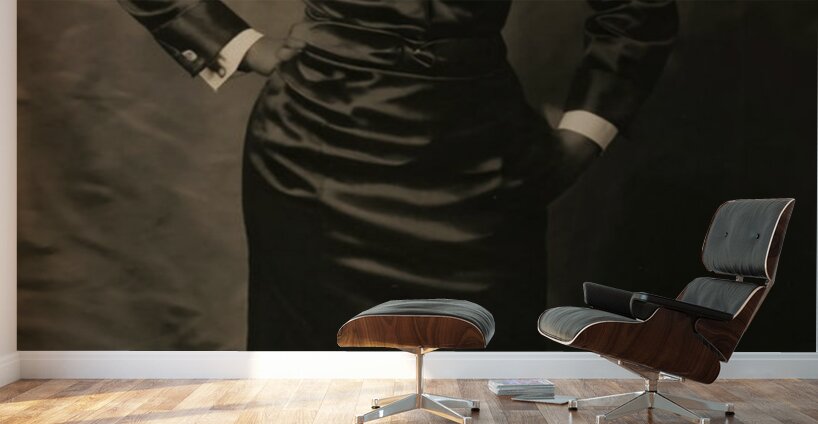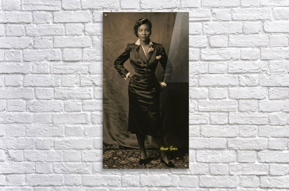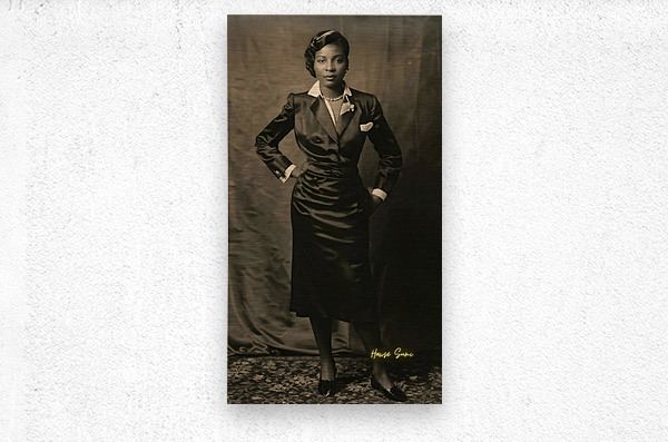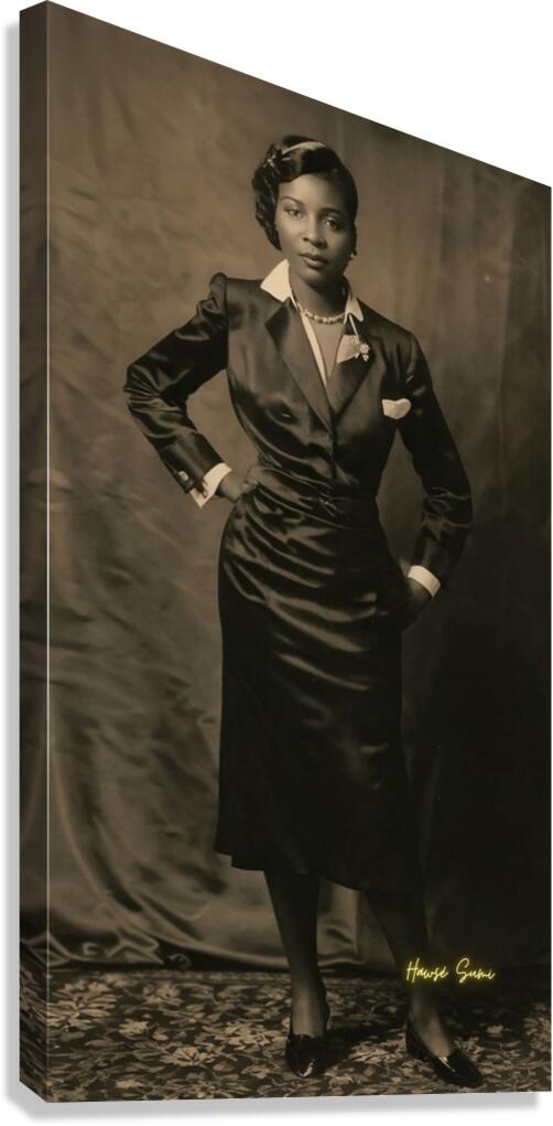 In the heart of the 1940s, a poised and determined woman stands confidently, embodying both strength and elegance. Dressed in a perfectly tailored satin dress, her presence commands respect and admiration. Her serene expression and flawless posture tell a story of resilience and grace, navigating the complexities of her era with unwavering dignity.