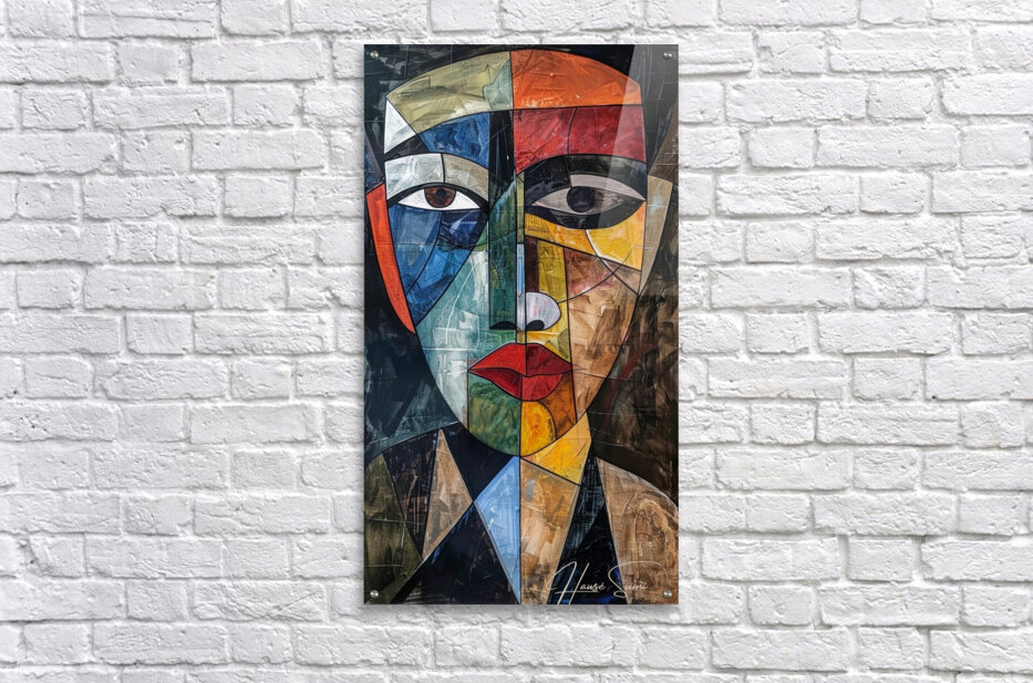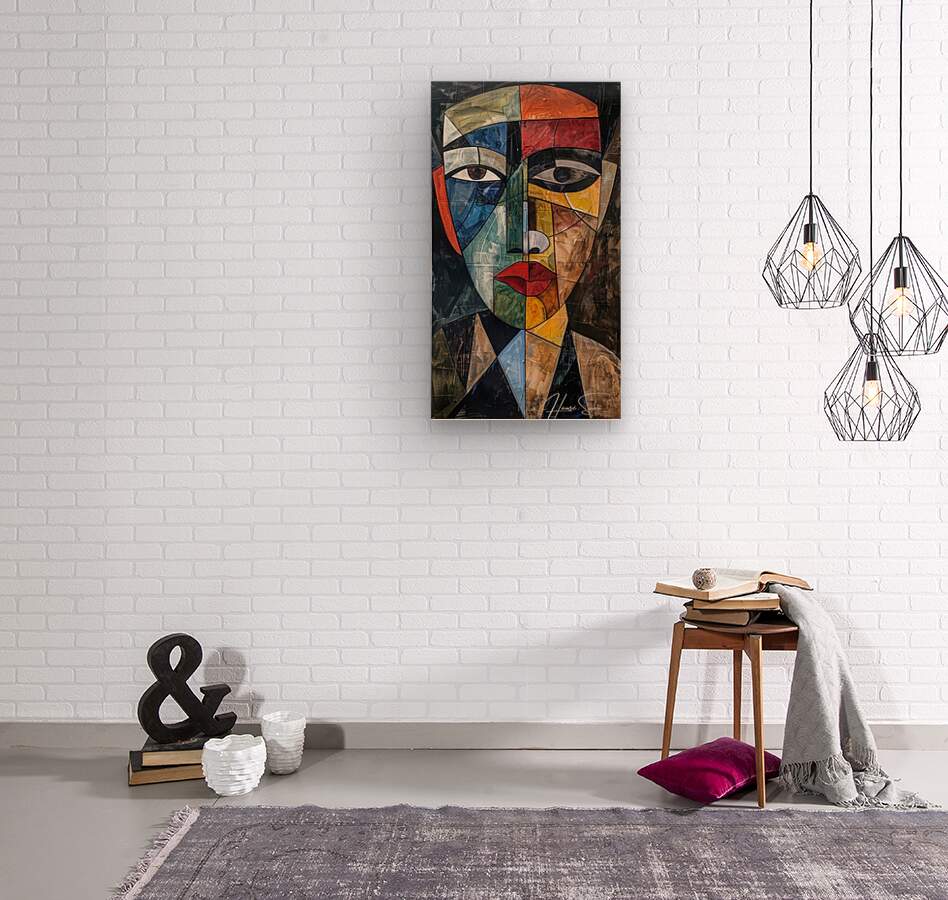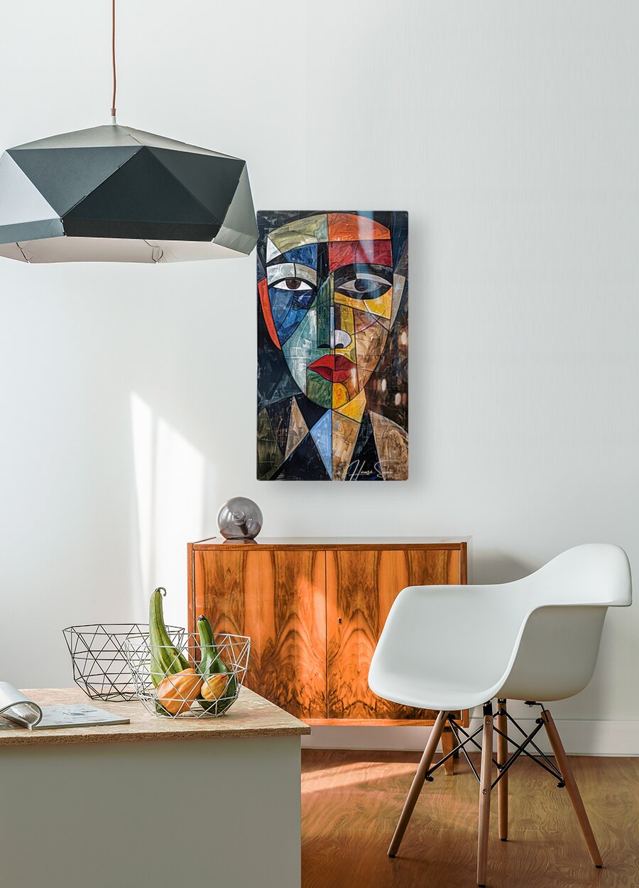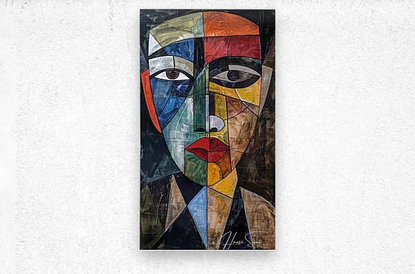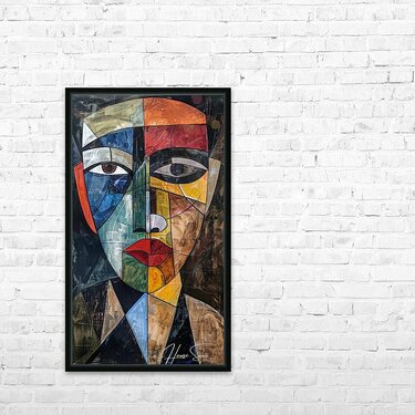 An abstract portrait of a female figure, characterized by its use of angular shapes and a rich palette of colors. The composition conveys a sense of d...[+]