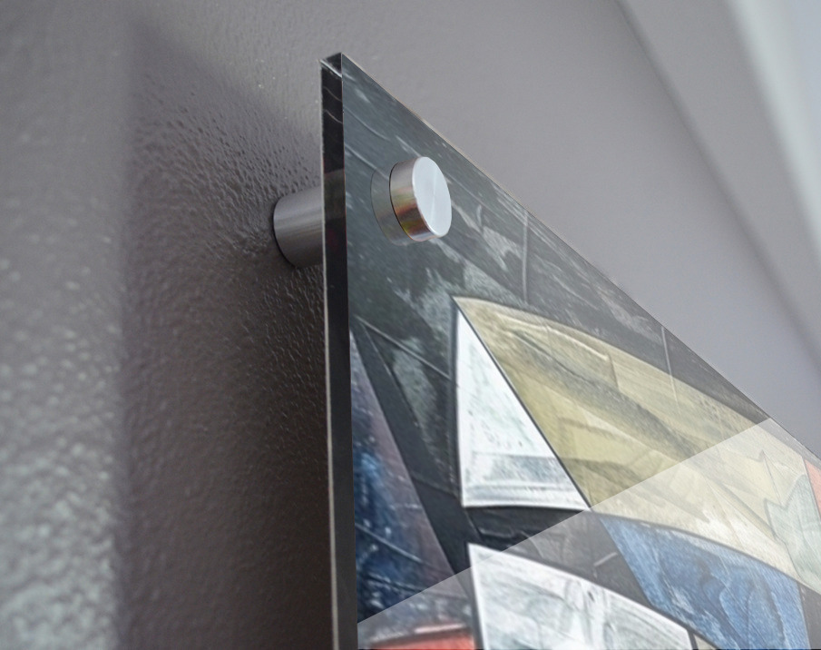 Printed to the edge - Ready to hang - provided with 4 premium polished aluminum stand off ( wall screws and mounting hardware provided )