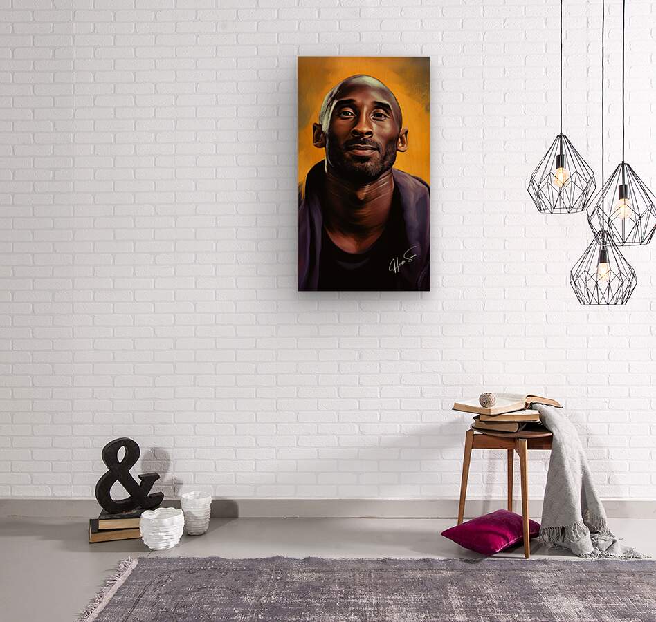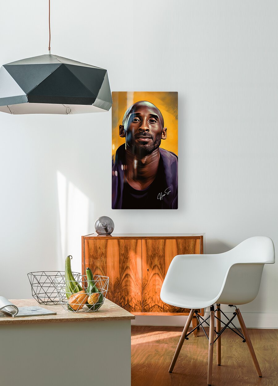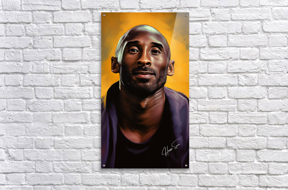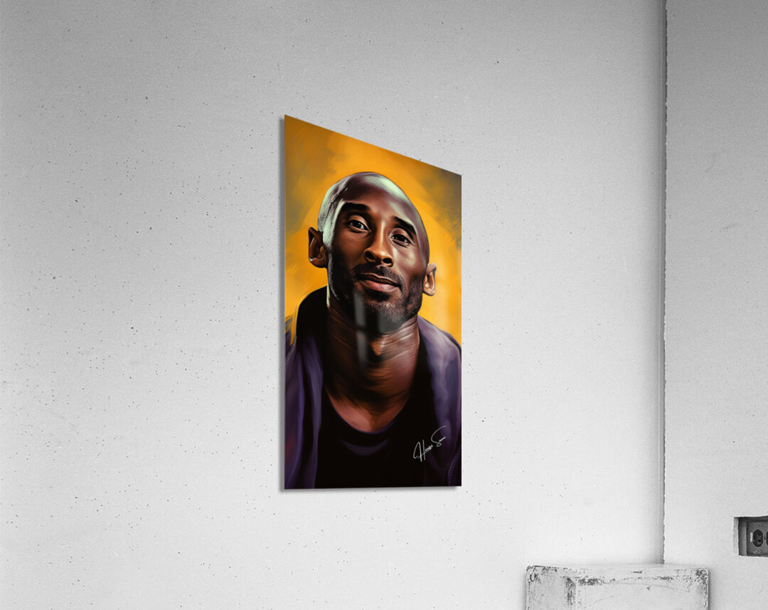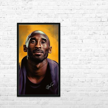 A stunning depiction of Kobe Bryant set against a golden backdrop, symbolizing his illustrious career and the legacy he left behind. His calm expressi...[+]