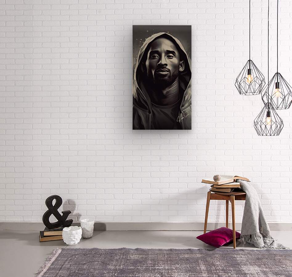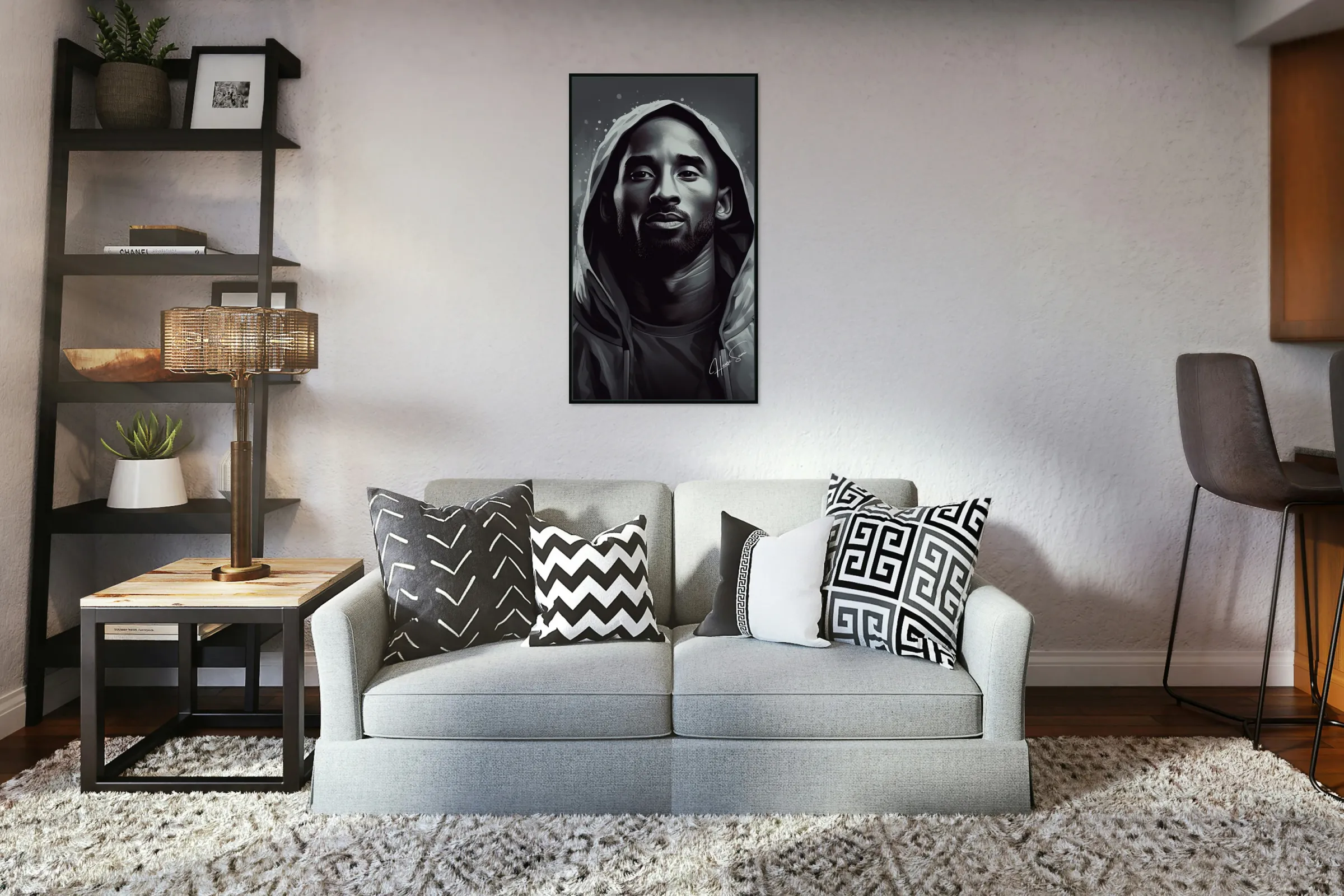 This monochromatic masterpiece captures Kobe Bryant's fierce and focused demeanor, embodying his on-court persona known as "The Black Mamba." The ...[+]