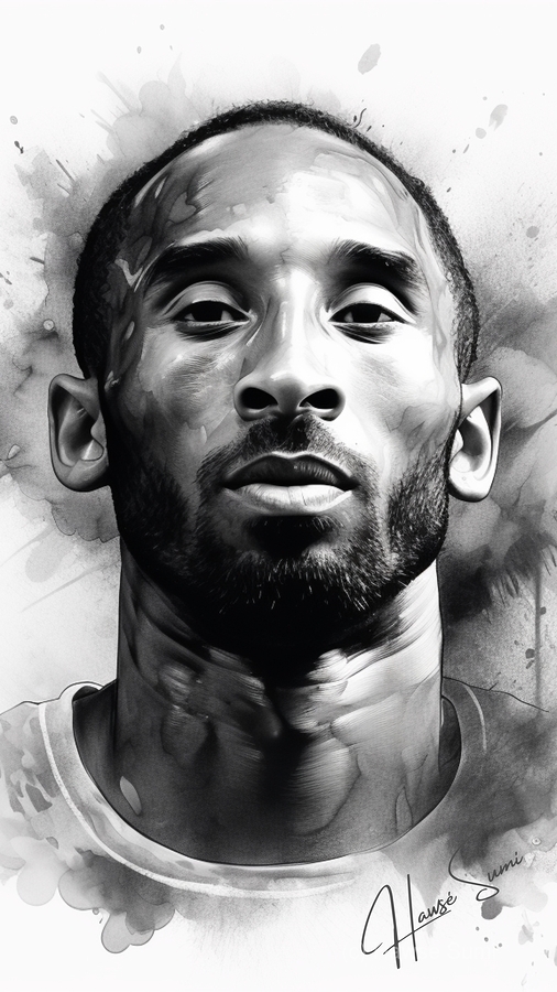 A monochromatic masterpiece capturing Kobe Bryant's intense focus and unwavering determination. The shadows and light interplay highlight his stre...[+]