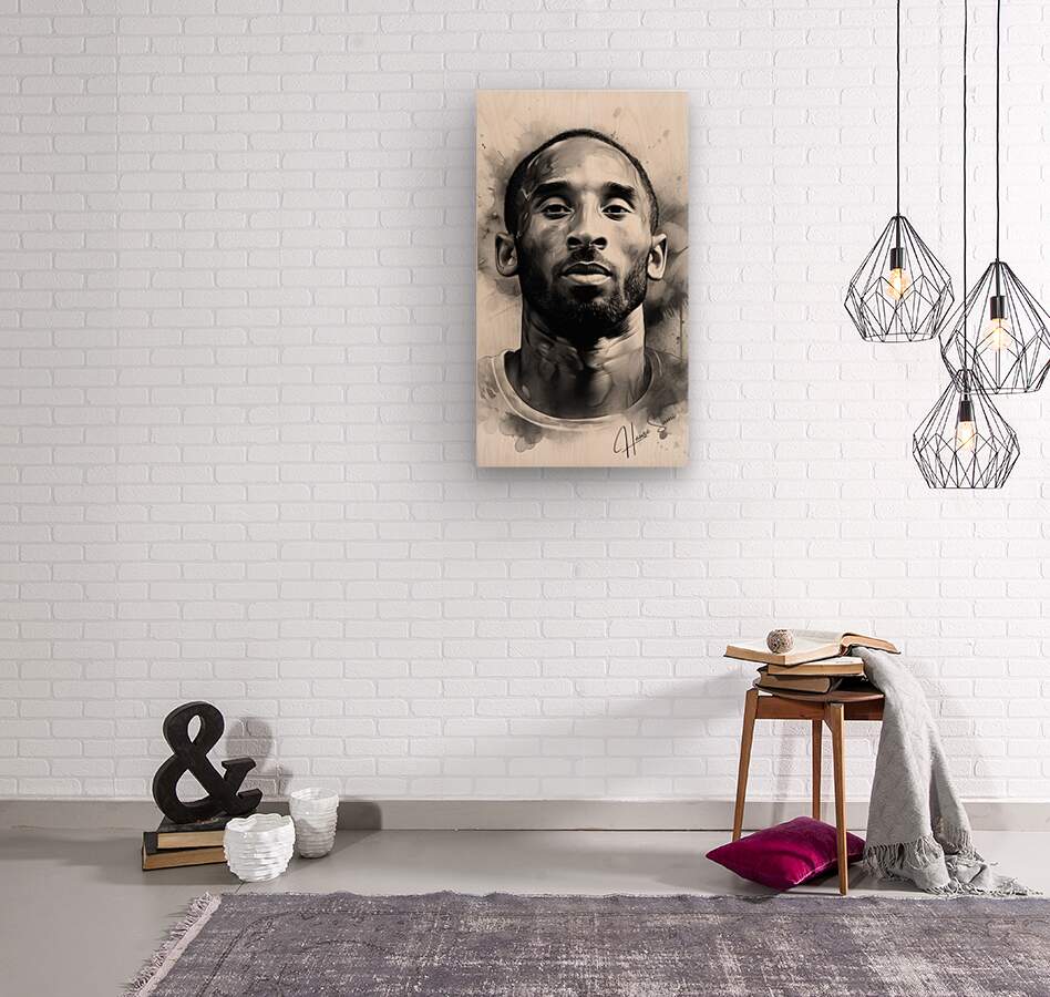 A monochromatic masterpiece capturing Kobe Bryant's intense focus and unwavering determination. The shadows and light interplay highlight his strength and resilience. Rest in peace.