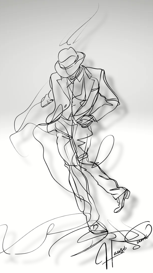 Embodied in his every move is the elegance of jazz. The dancer, dressed in a classic suit and fedora, glides across the floor with poise and sophistication. His movements are a tribute to the refined yet expressive nature of jazz dance, captivating all who watch.