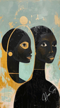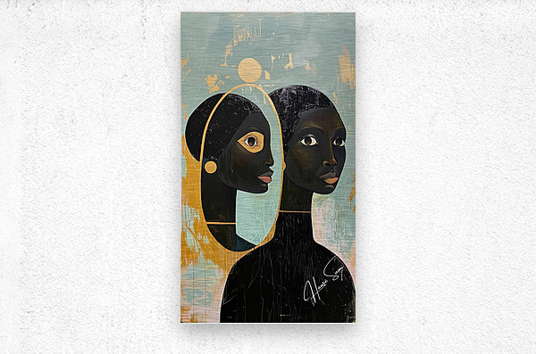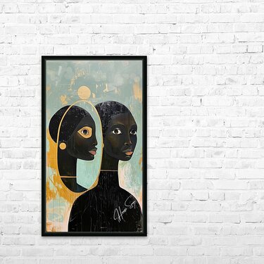 "Mirror of the Soul" depicts an African woman gazing into a mirror, symbolizing self-awareness and inner beauty. The golden and turquoise tones create a serene and reflective atmosphere, emphasizing the importance of self-discovery and the recognition of one's true essence.