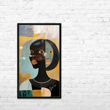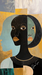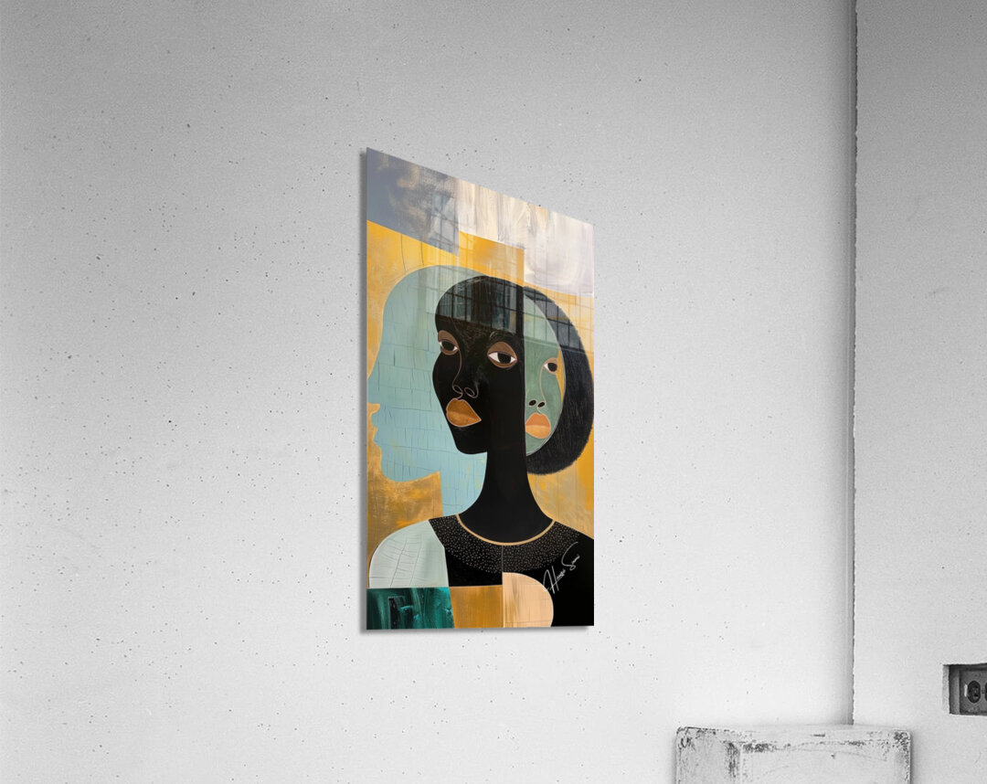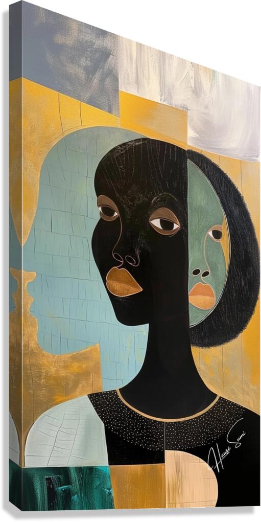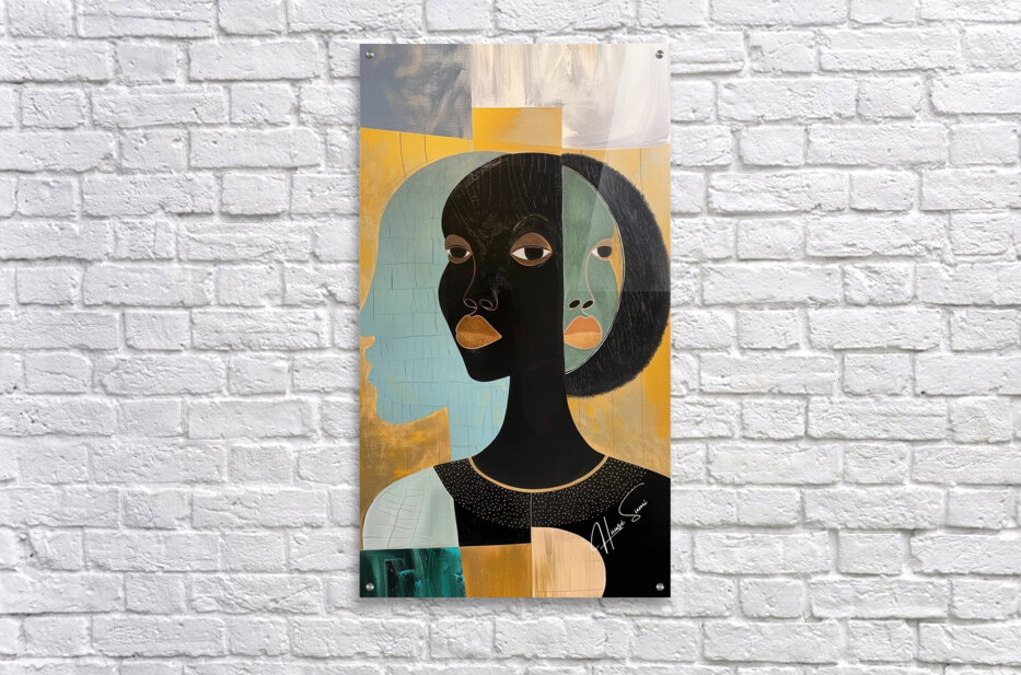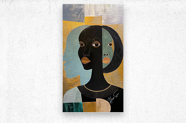 In "Reflections of Heritage," the multiple faces represent the different aspects of self and the deep connection to one's roots. The golden and teal palette evokes a sense of richness and calm, highlighting the introspective journey of understanding and embracing one's heritage.