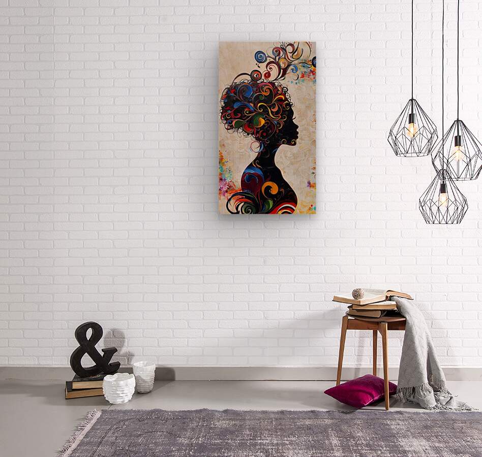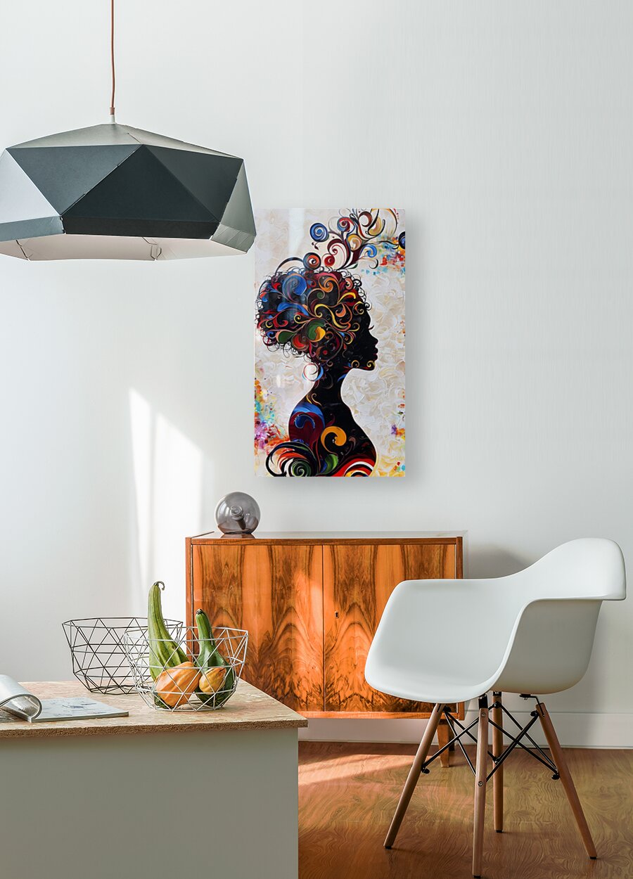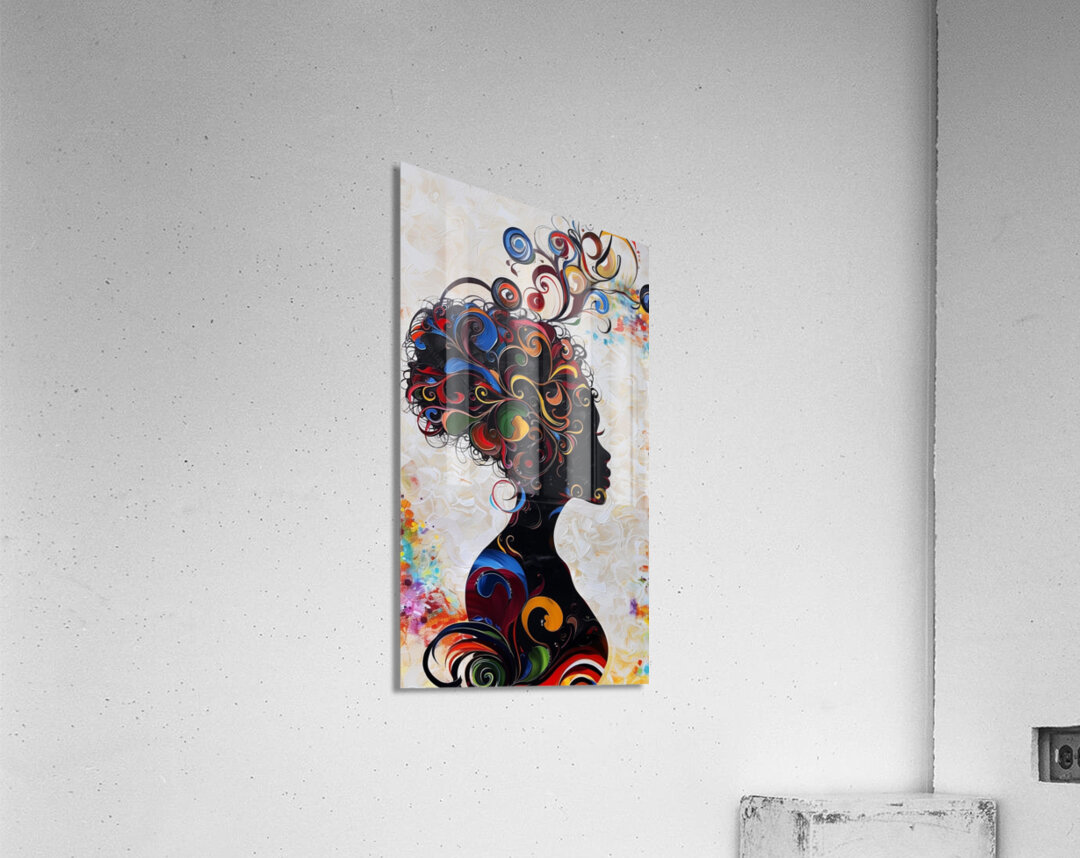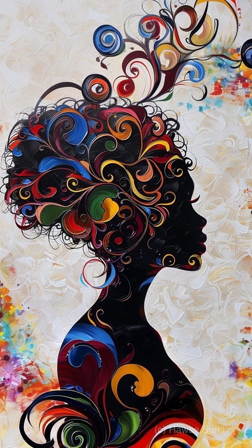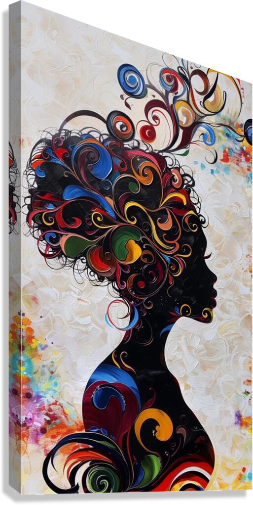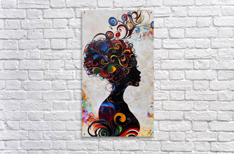 This captivating piece embodies the vibrant journey of self-discovery and the dynamic beauty within us all. The silhouette of a woman, adorned with swirling colors, represents the myriad emotions, experiences, and dreams that make up our inner world. Each swirl and hue signifies a unique aspect of her soul, blending together to create a harmonious and intricate tapestry of life. The background, a canvas of soft textures and splashes of color, symbolizes the boundless potential and the infinite possibilities that lie ahead. This artwork is a celebration of individuality, resilience, and the power of embracing one's true self. Embrace your unique essence and let your inner colors shine brightly!"