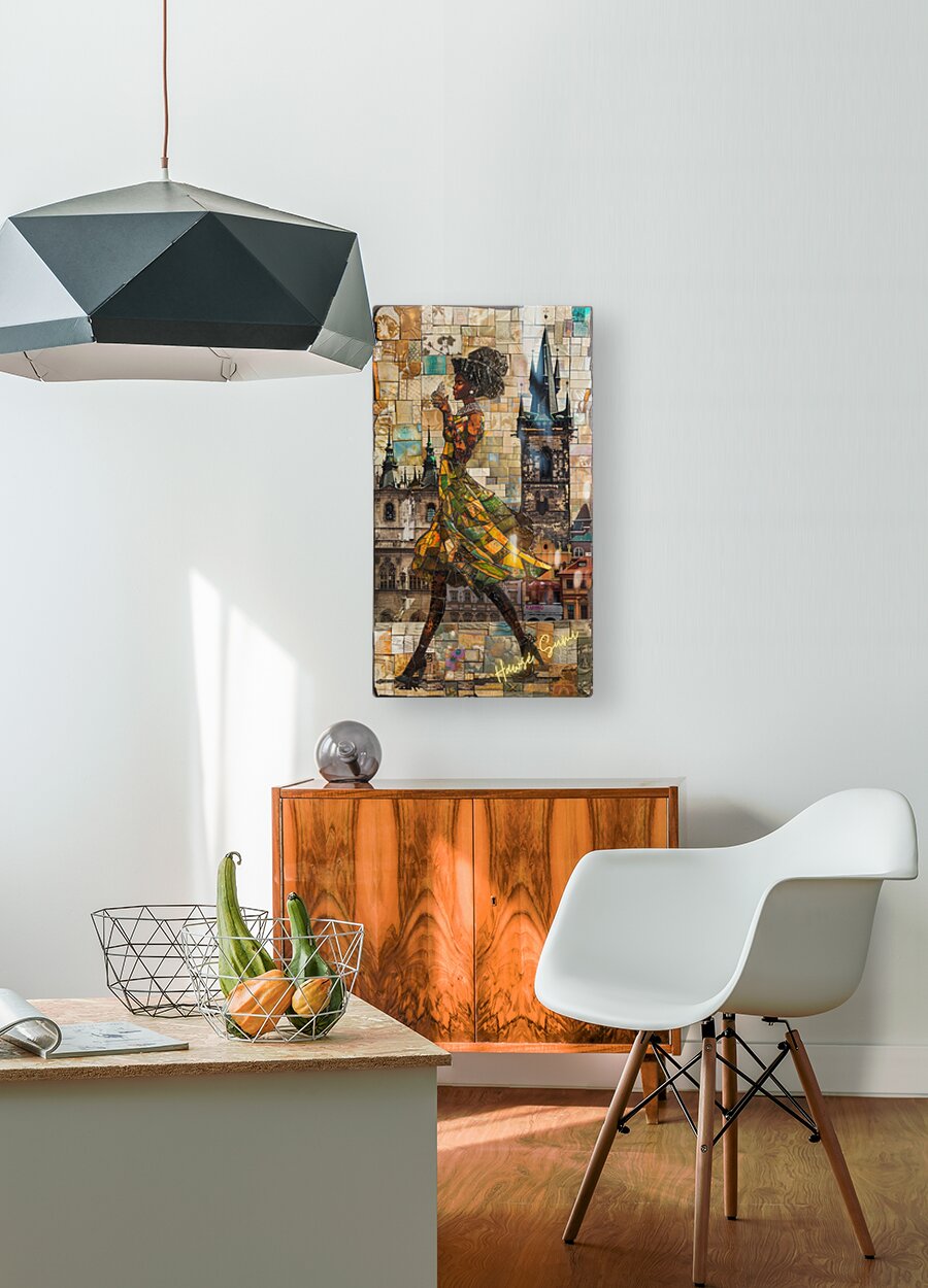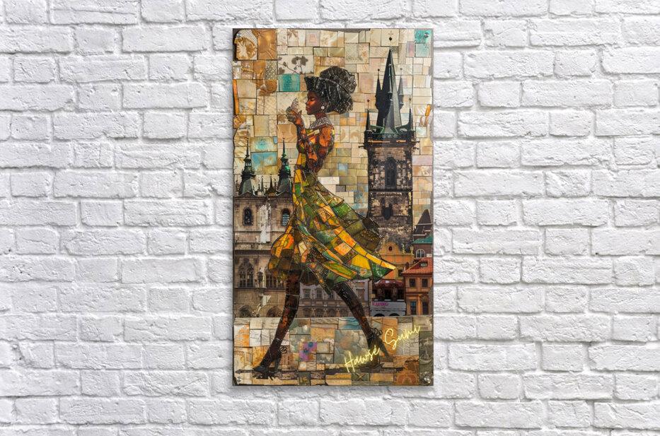 Nyah walks through the historic streets of an ancient city, her vibrant dress flowing like the wind, embodying the spirit of her ancestors. She holds a delicate flower, symbolizing hope and resilience. Each mosaic tile tells a fragment of her story, connecting her past to her present as she paves the way for a brighter future.