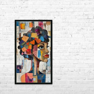 "Imani the Bold" captures the essence of faith and fearlessness. Named after the Swahili word for "faith," Imani symbolizes the courage to persevere through adversity. Her intense gaze and vibrant aura are a testament to the power of belief in oneself. The intricate interplay of bold colors reflects her determination and the unshakable spirit of African womanhood, an ode to women who stand tall against all odds.