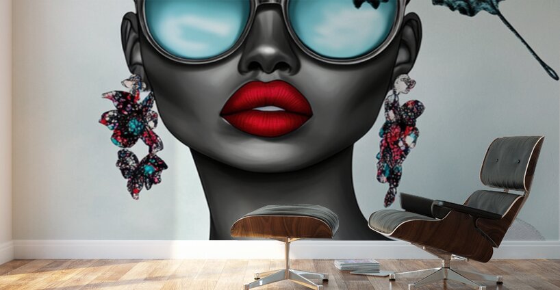 Wearing oversized aqua sunglasses and adorned with sky-blue butterflies, she embodies calm confidence and a mysterious allure. Her red lips pop agai...[+]